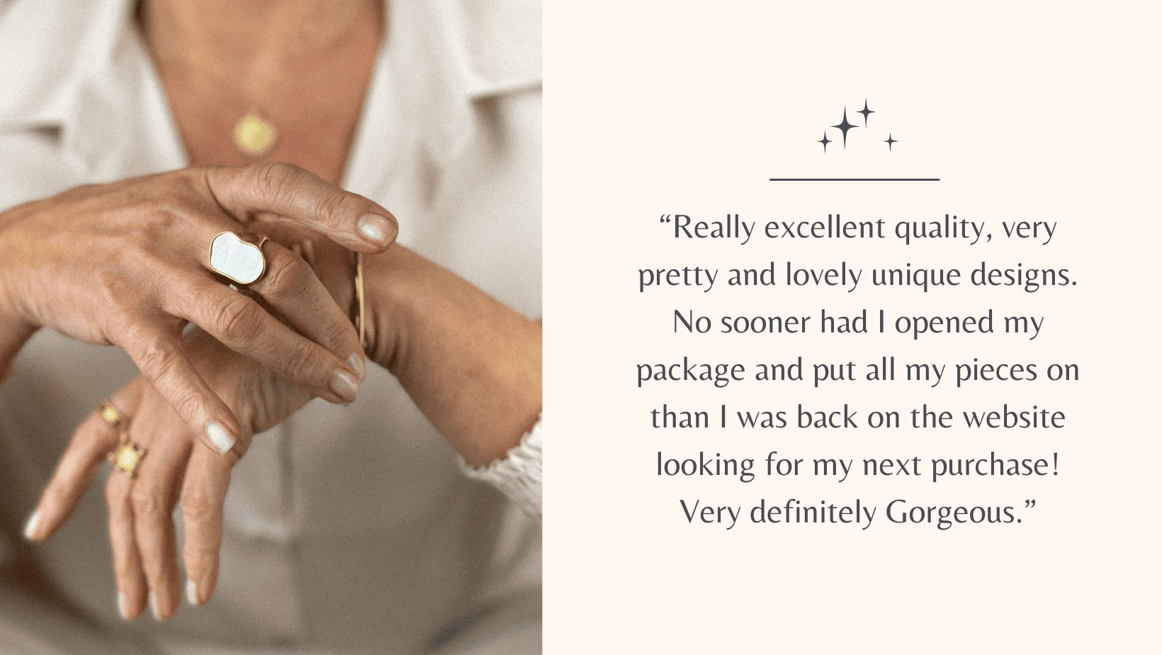 “The jewellery selection is inspired and unique. I have been searching for something special for months and once I found this shop I was spoilt for choice. I can’t wait to order my next treasure.” – Lisa