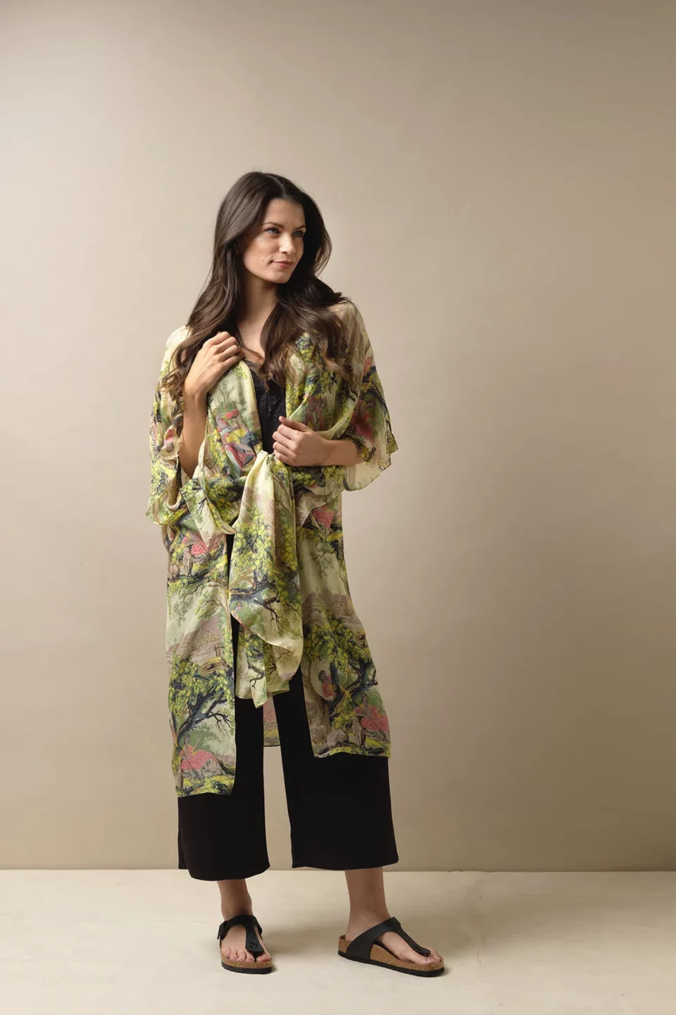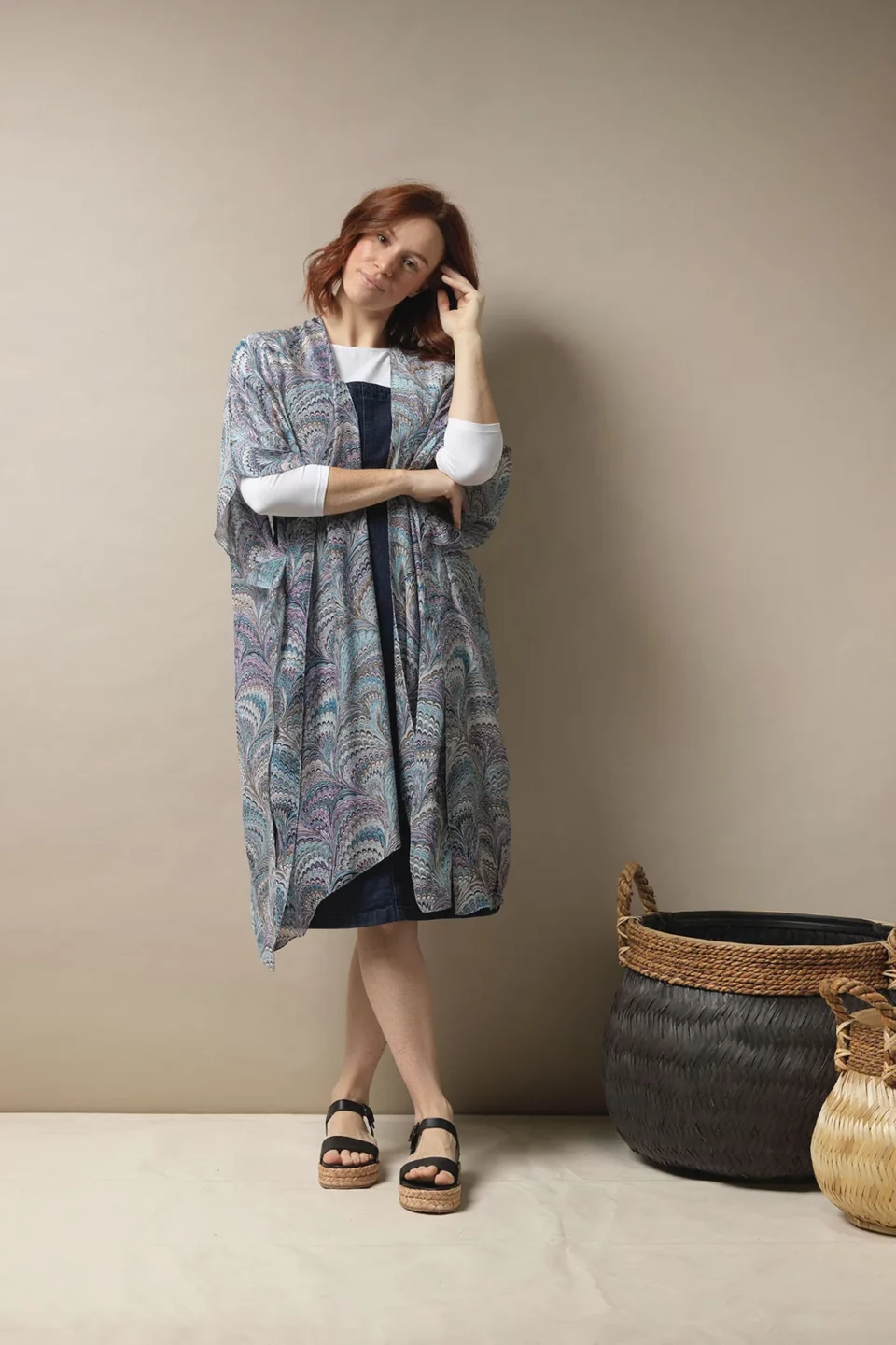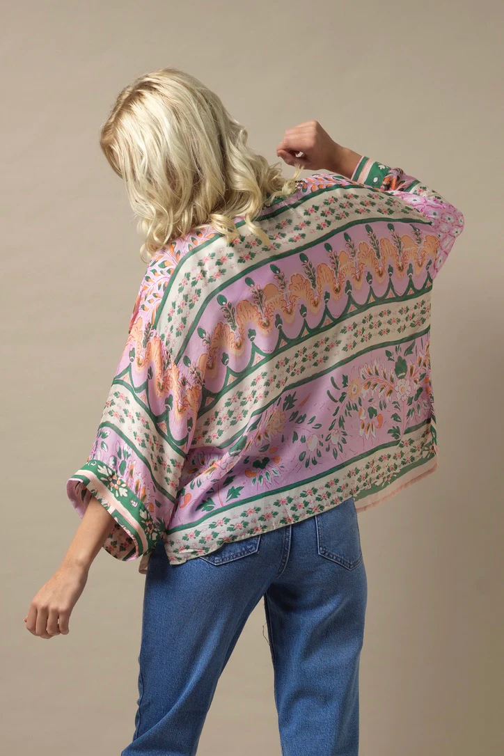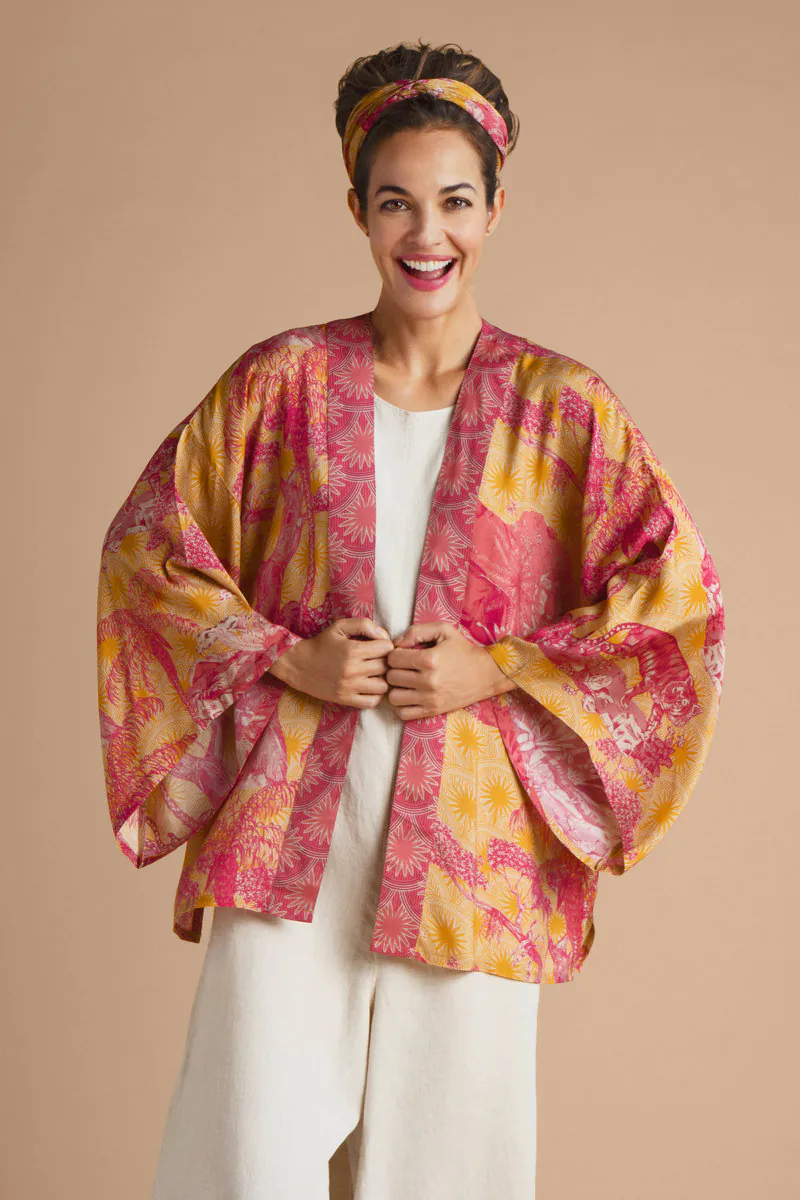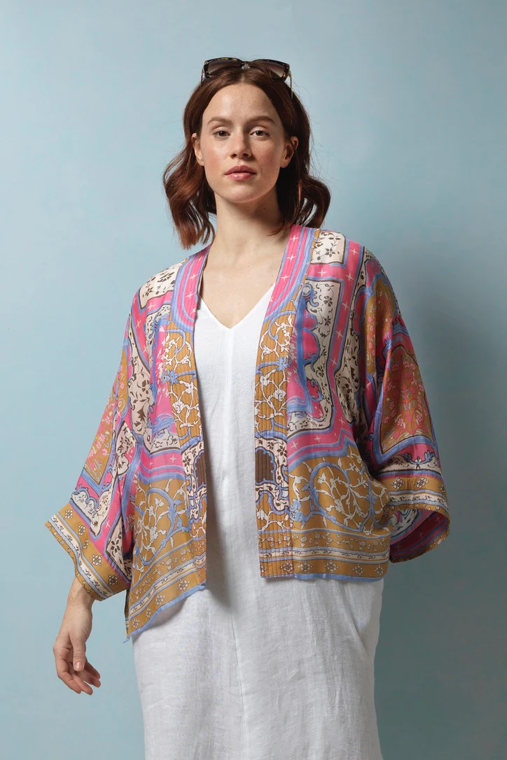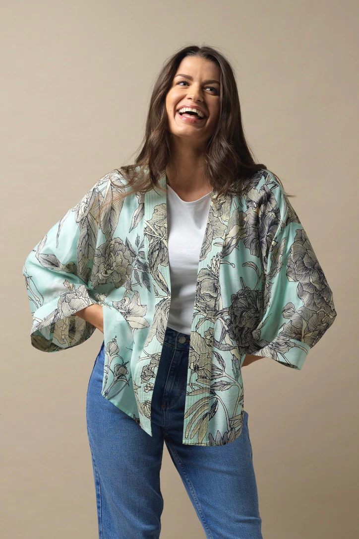 One Hundred Stars Kimonos are printed-screen printed with hand-designed patterns on a custom blend of modal and viscose, creating a silky smooth lightweight material while having a more sustainable impact on the environment.  Kimonos are a versatile piece of clothing and can be worn as a luxe piece or paired with trainers and jeans for a more casual look. Our kimonos are also very popular as gifts. If you would like something a bit longer, then check out our gowns selection.