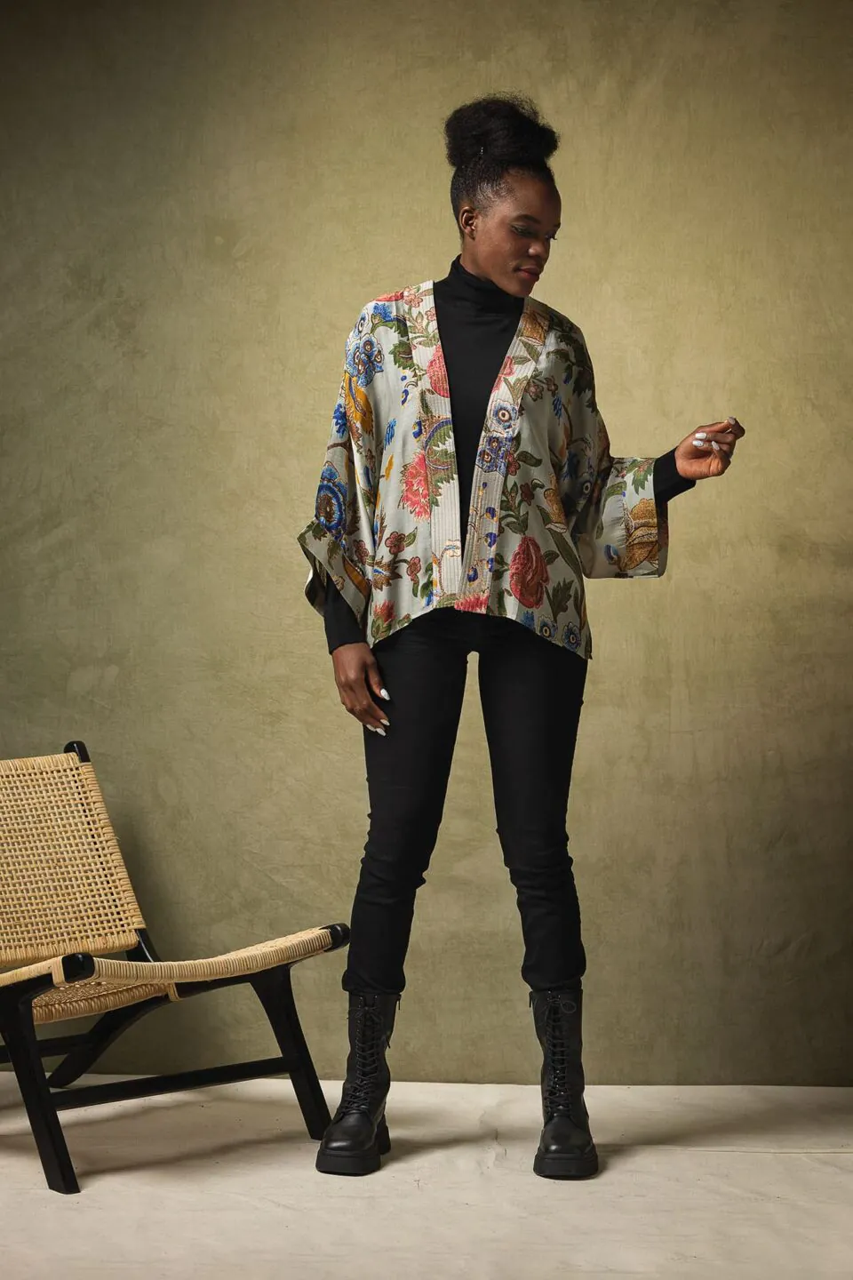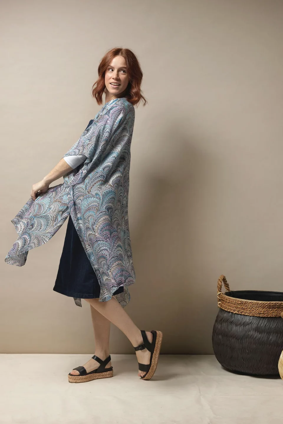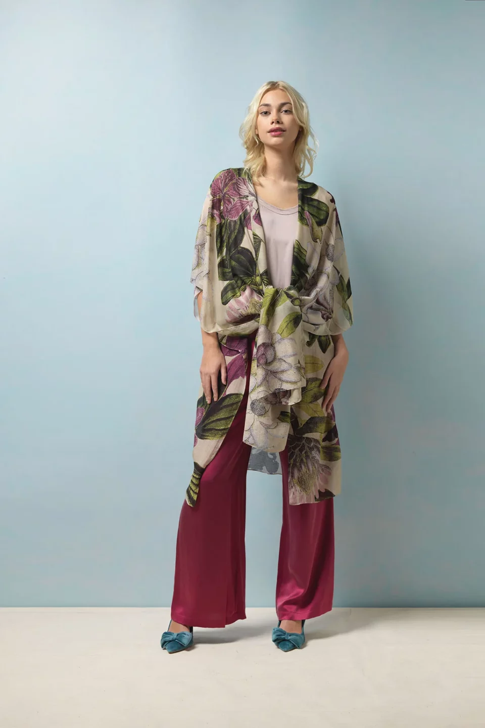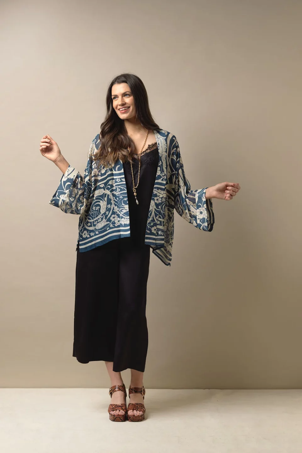 One Hundred Stars Kimonos are printed-screen printed with hand-designed patterns on a custom blend of modal and viscose, creating a silky smooth lightweight material while having a more sustainable impact on the environment.  Kimonos are a versatile piece of clothing and can be worn as a luxe piece or paired with trainers and jeans for a more casual look. Our kimonos are also very popular as gifts. If you would like something a bit longer, then check out our gowns selection.