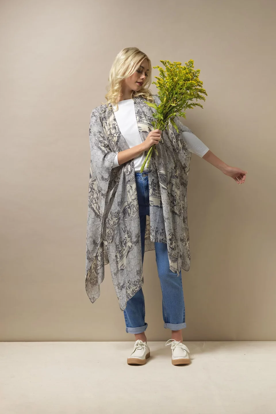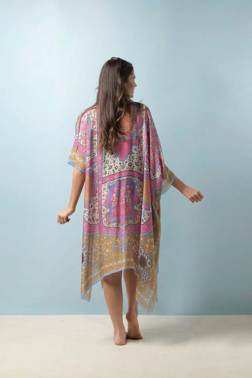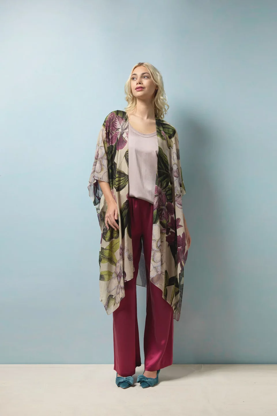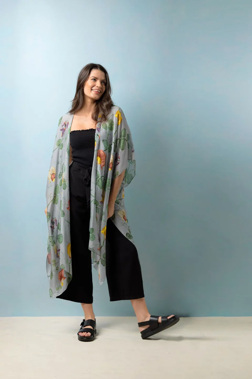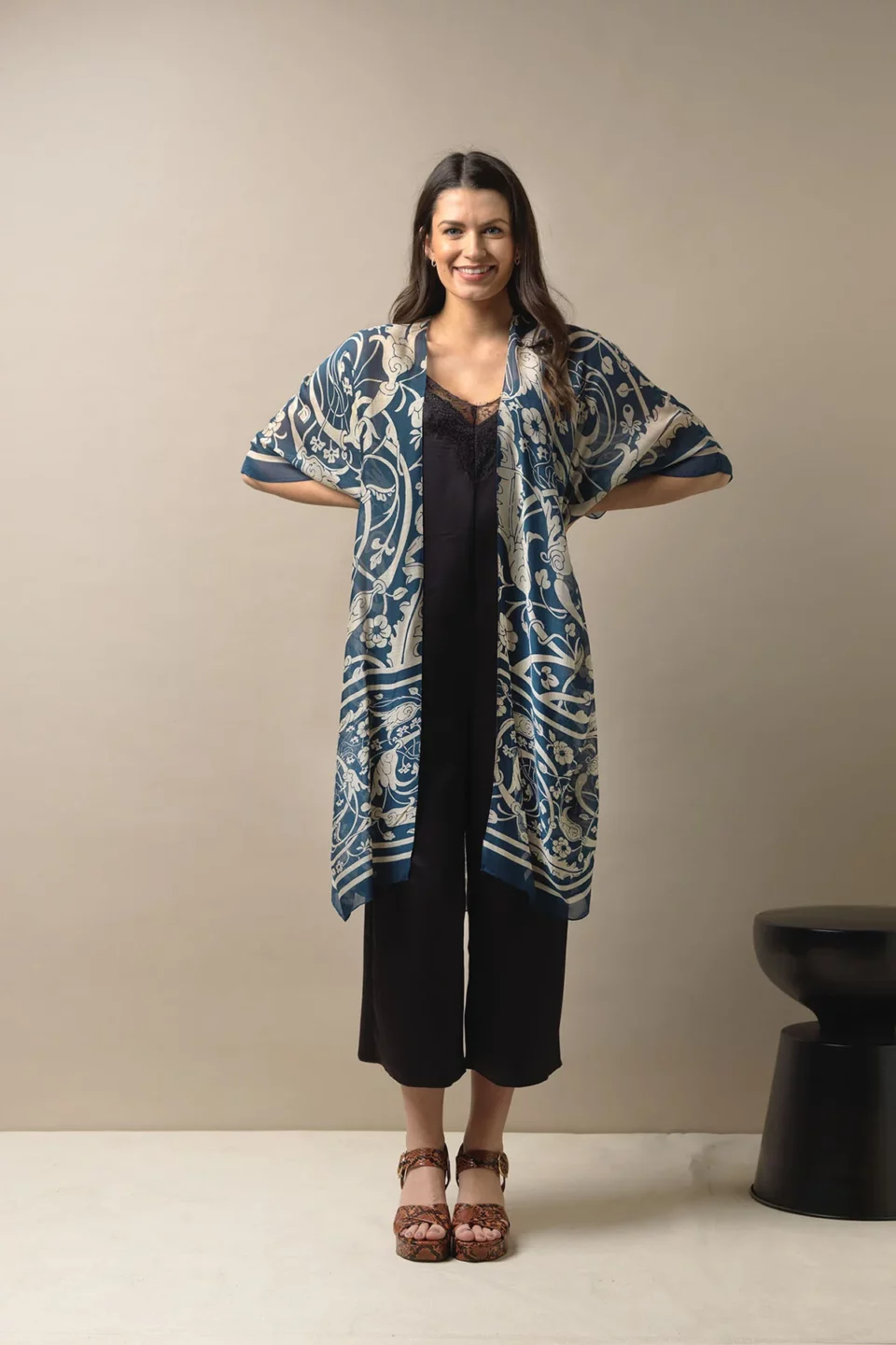 One Hundred Stars Kimonos are printed-screen printed with hand-designed patterns on a custom blend of modal and viscose, creating a silky smooth lightweight material while having a more sustainable impact on the environment.  Kimonos are a versatile piece of clothing and can be worn as a luxe piece or paired with trainers and jeans for a more casual look. Our kimonos are also very popular as gifts. If you would like something a bit longer, then check out our gowns selection.