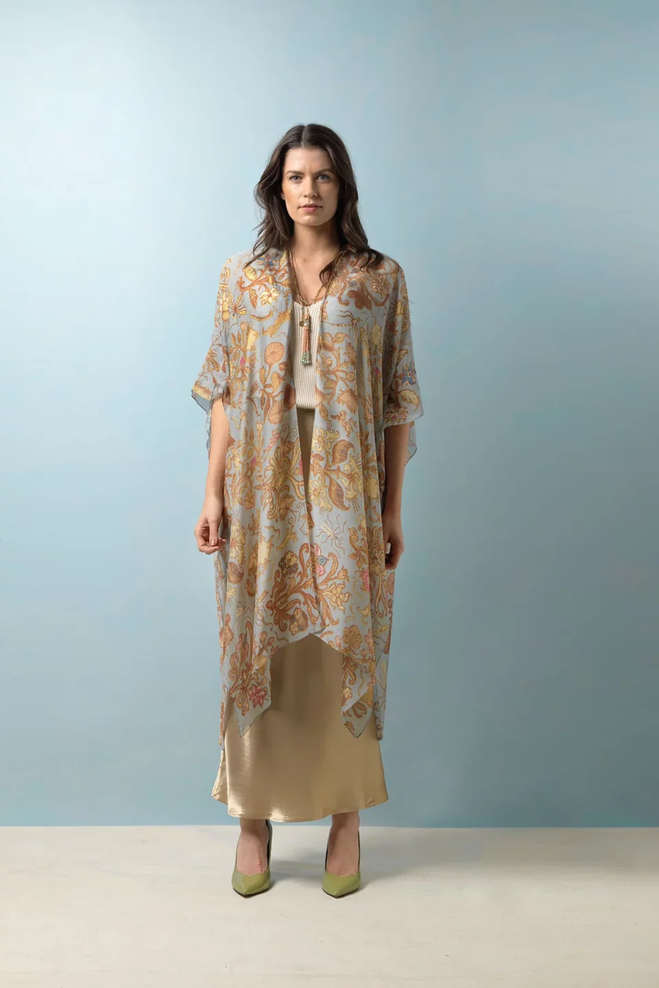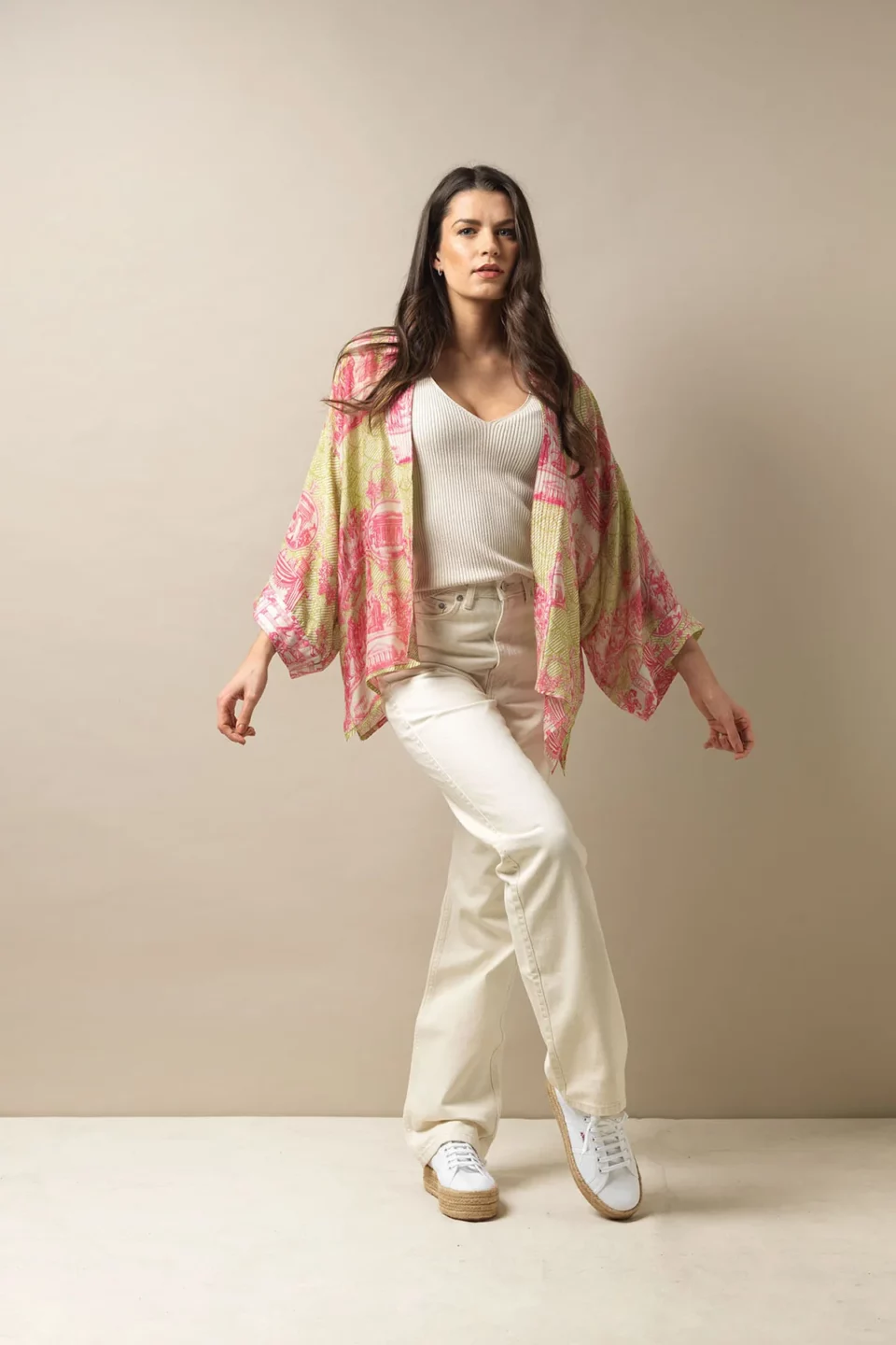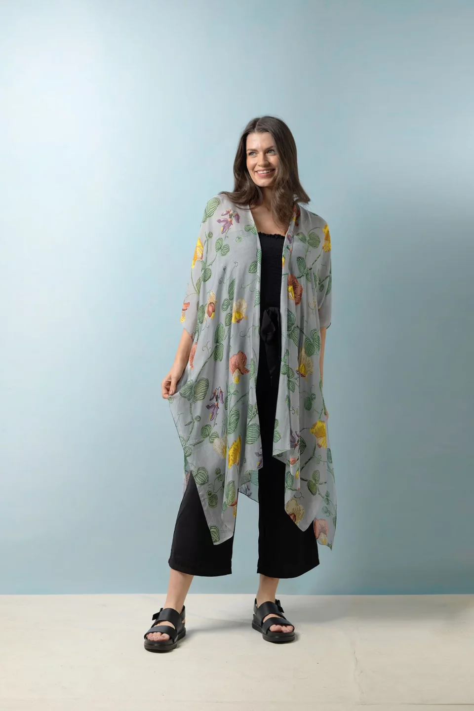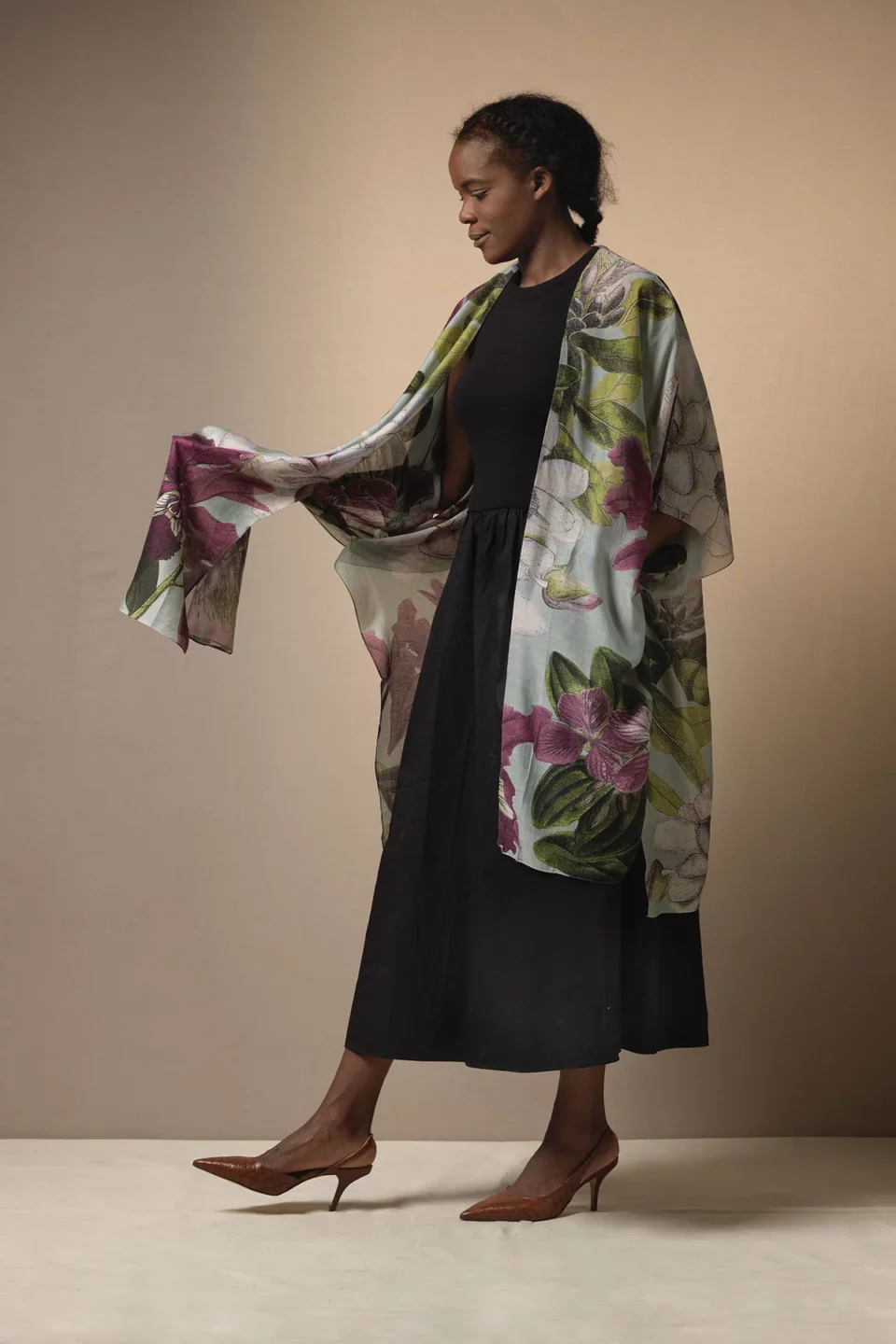 One Hundred Stars Kimonos are printed-screen printed with hand-designed patterns on a custom blend of modal and viscose, creating a silky smooth lightweight material while having a more sustainable impact on the environment.  Kimonos are a versatile piece of clothing and can be worn as a luxe piece or paired with trainers and jeans for a more casual look. Our kimonos are also very popular as gifts. If you would like something a bit longer, then check out our gowns selection.
