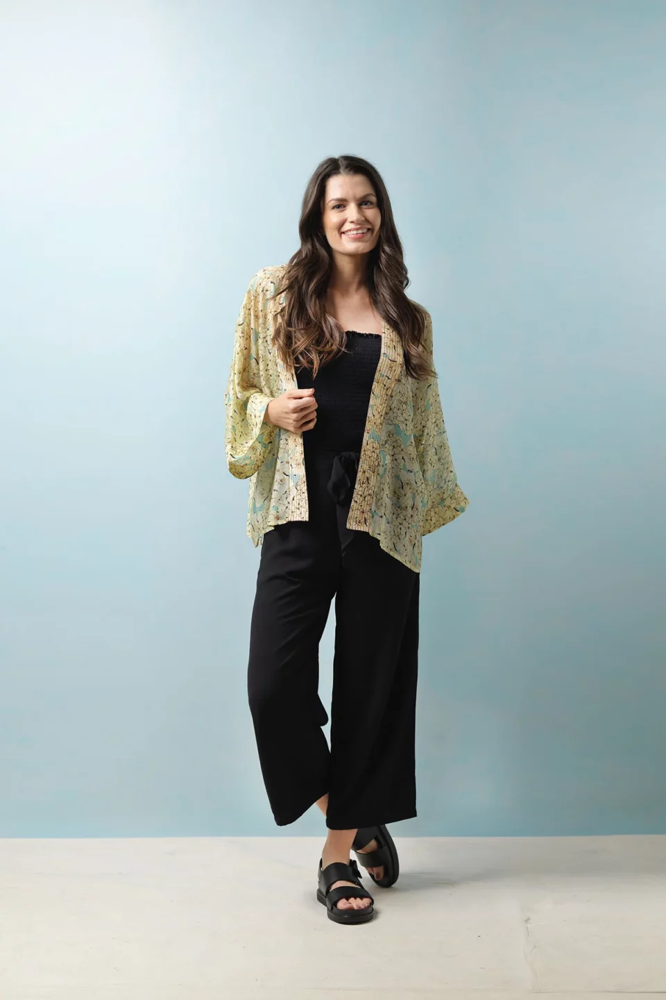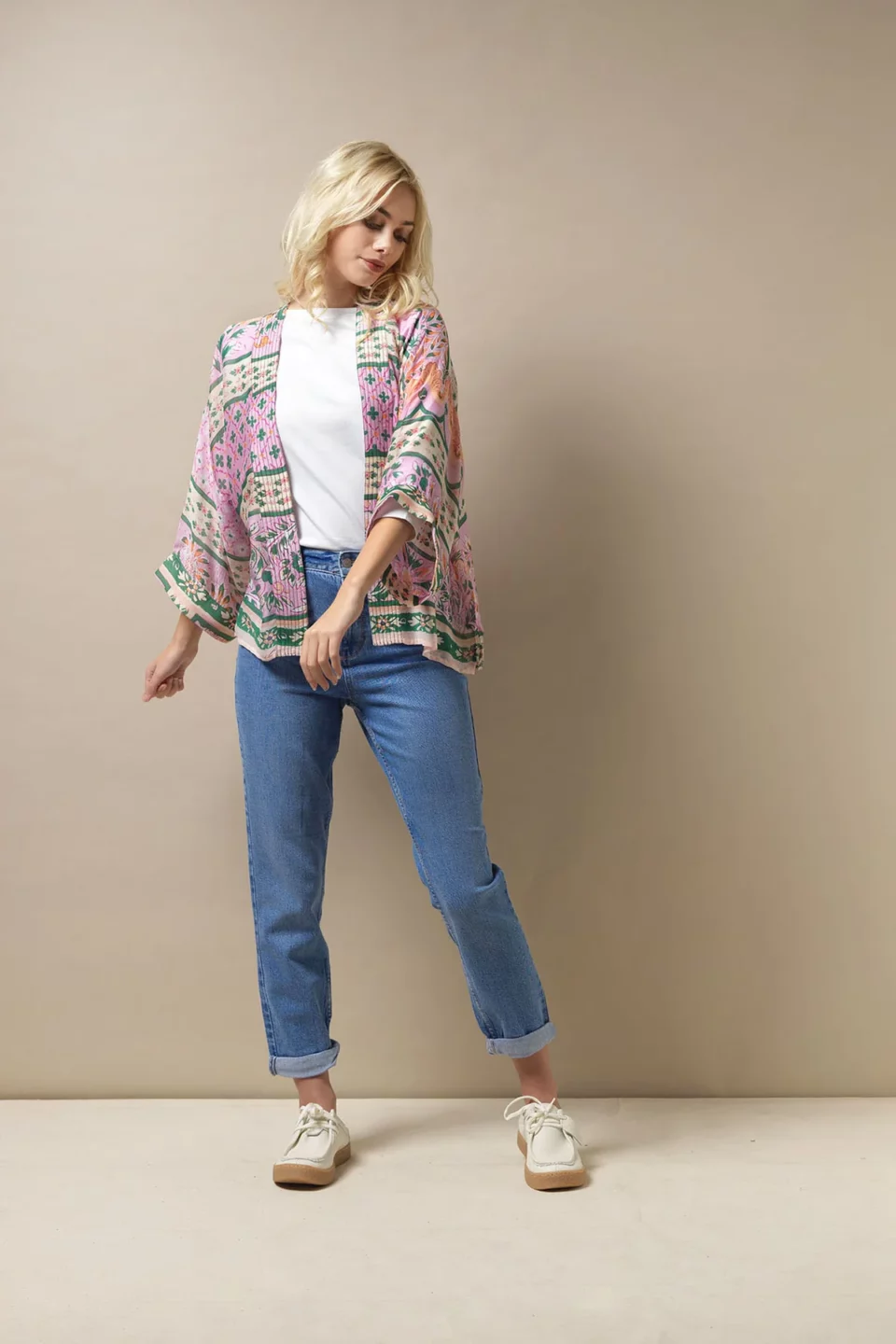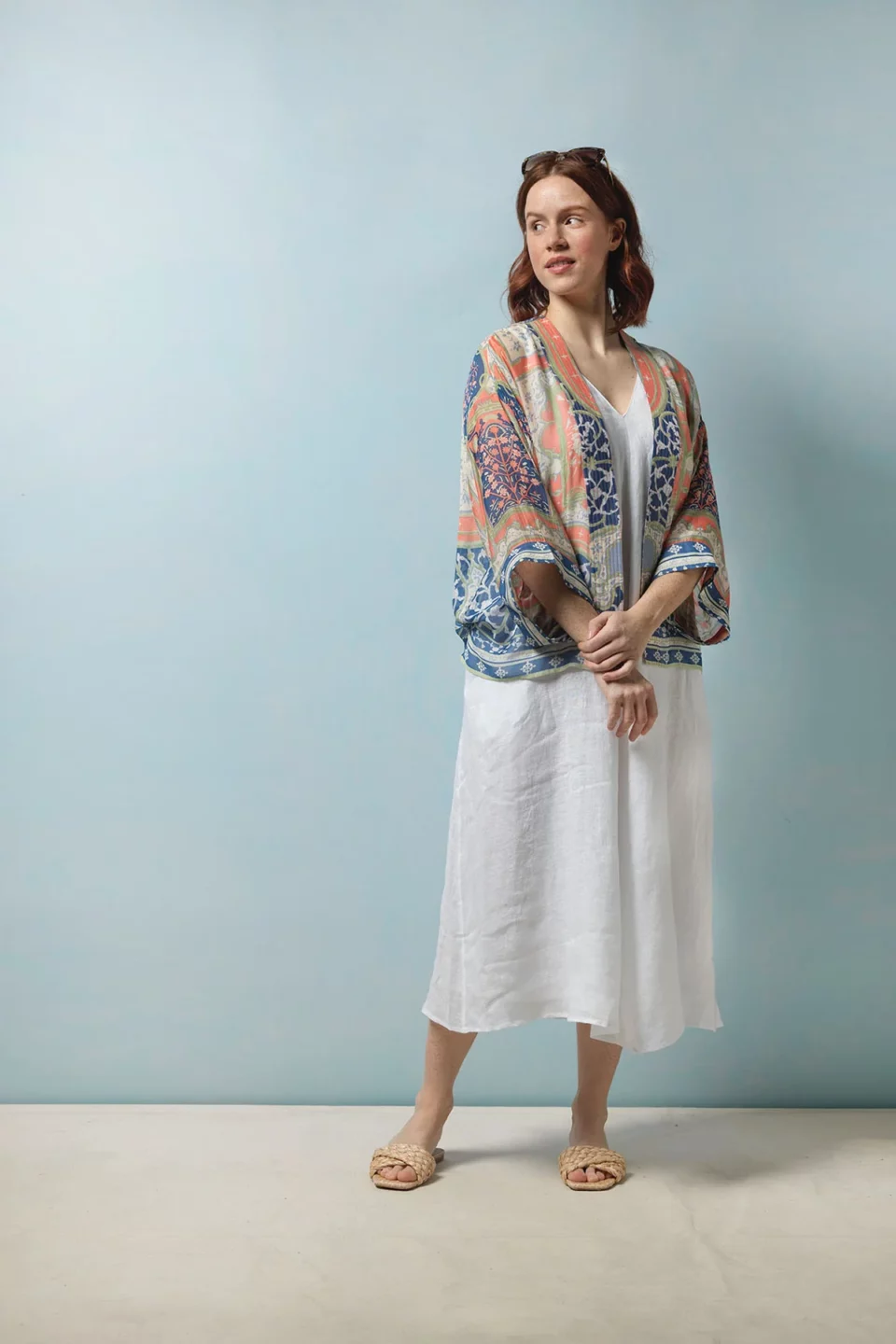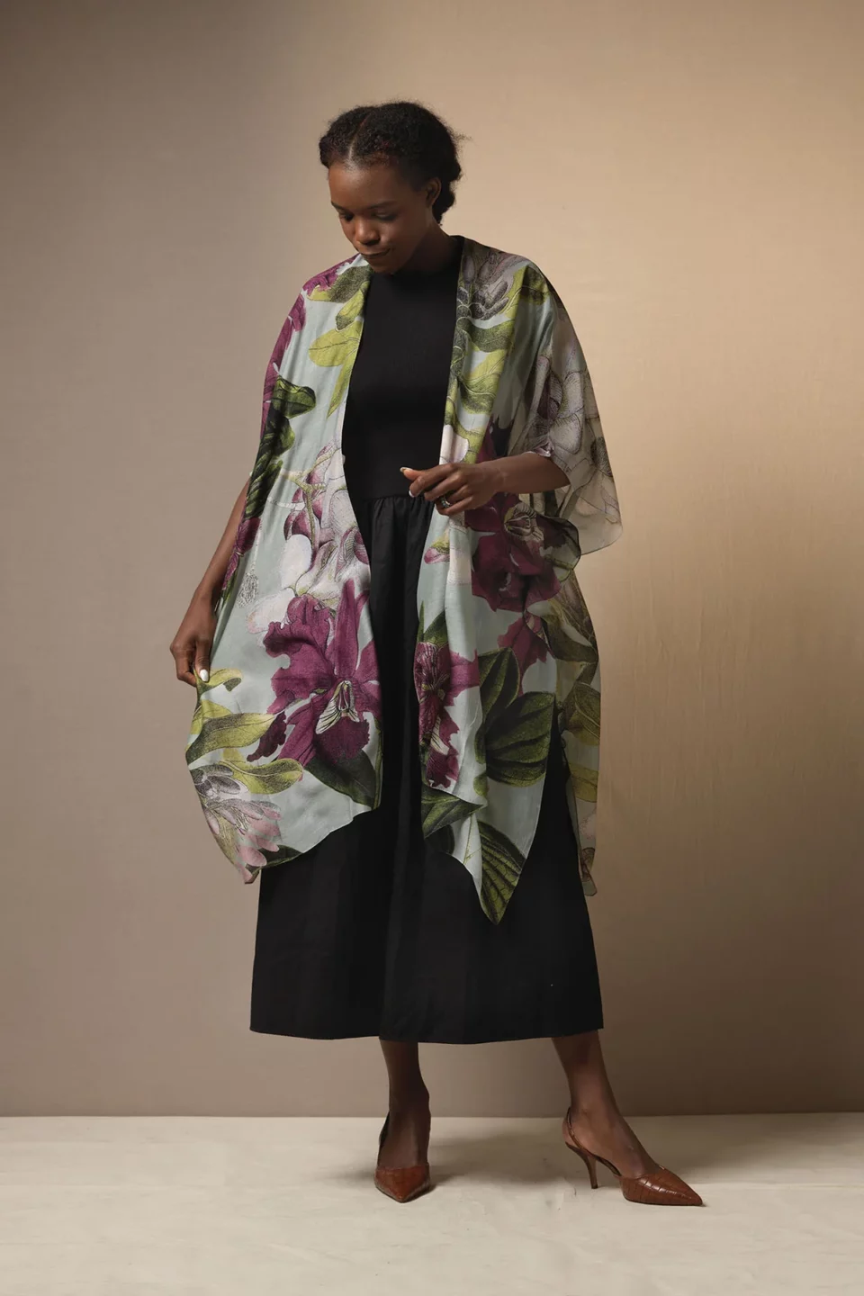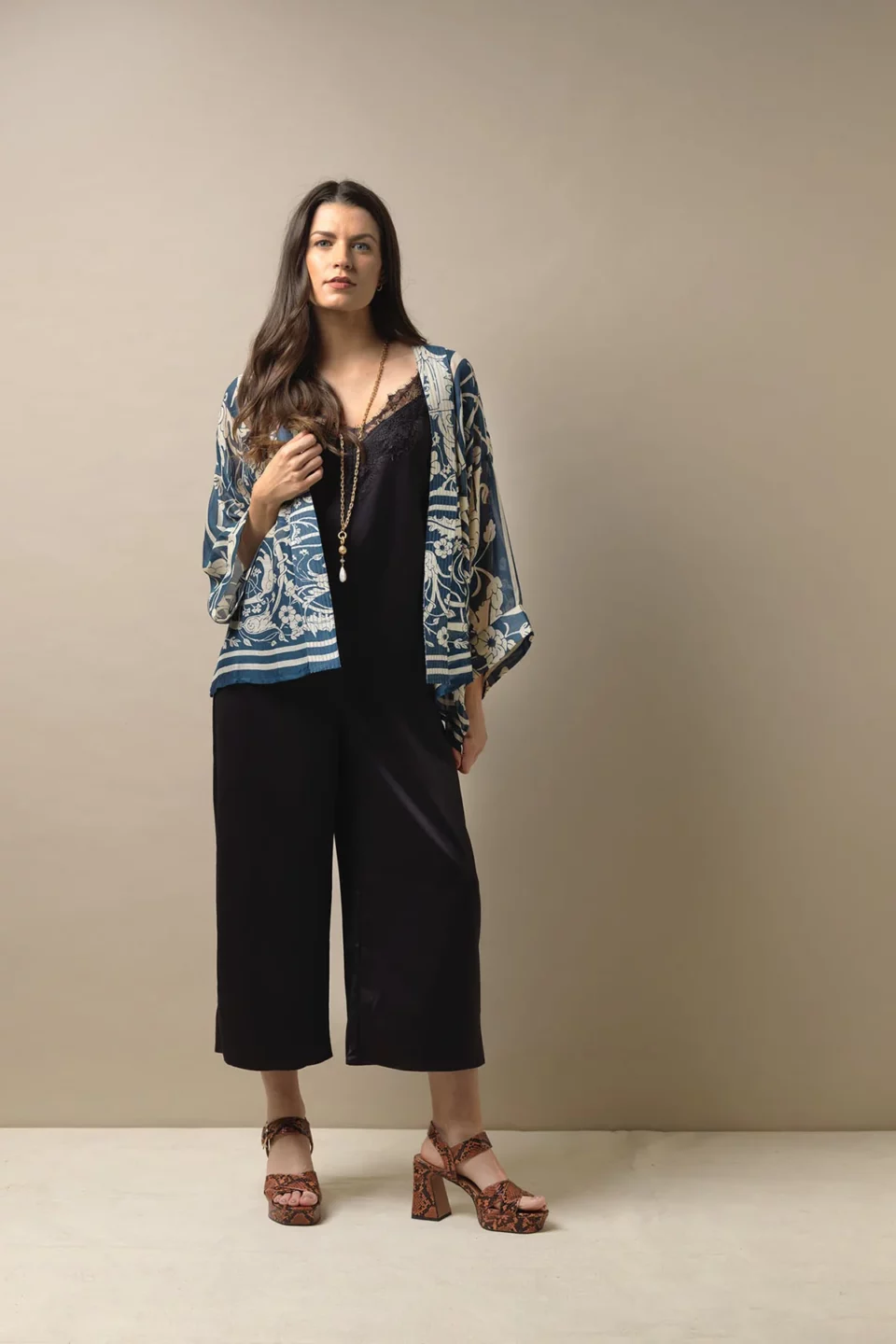 One Hundred Stars Kimonos are printed-screen printed with hand-designed patterns on a custom blend of modal and viscose, creating a silky smooth lightweight material while having a more sustainable impact on the environment.  Kimonos are a versatile piece of clothing and can be worn as a luxe piece or paired with trainers and jeans for a more casual look. Our kimonos are also very popular as gifts. If you would like something a bit longer, then check out our gowns selection.