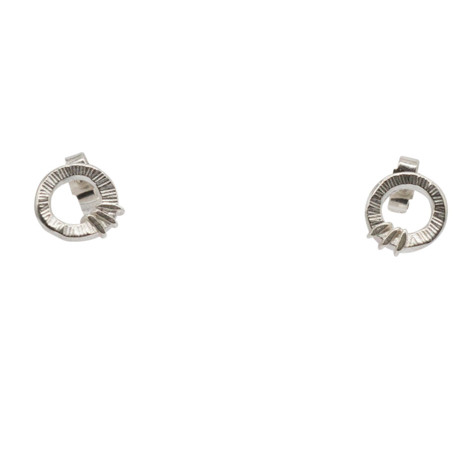 Adele’s design isn’t your run-of-the-mill. She’s always been interested in the natural interplay of different colours of metal, including naturally occurring and chemically altered. She is a big fan of oxidised silver and as a result, her jewellery can take on a more grungy vibe, compared to some of our other designers. The working properties of the media have a significant and creative influence on the final outcome of her jewellery. To quote Adele Taylor “I like the way you can draw on the surface by stamping and embossing. I have always been interested in surface pattern and texture. and I find acid etching a wonderful way of drawing directly onto the metal”.