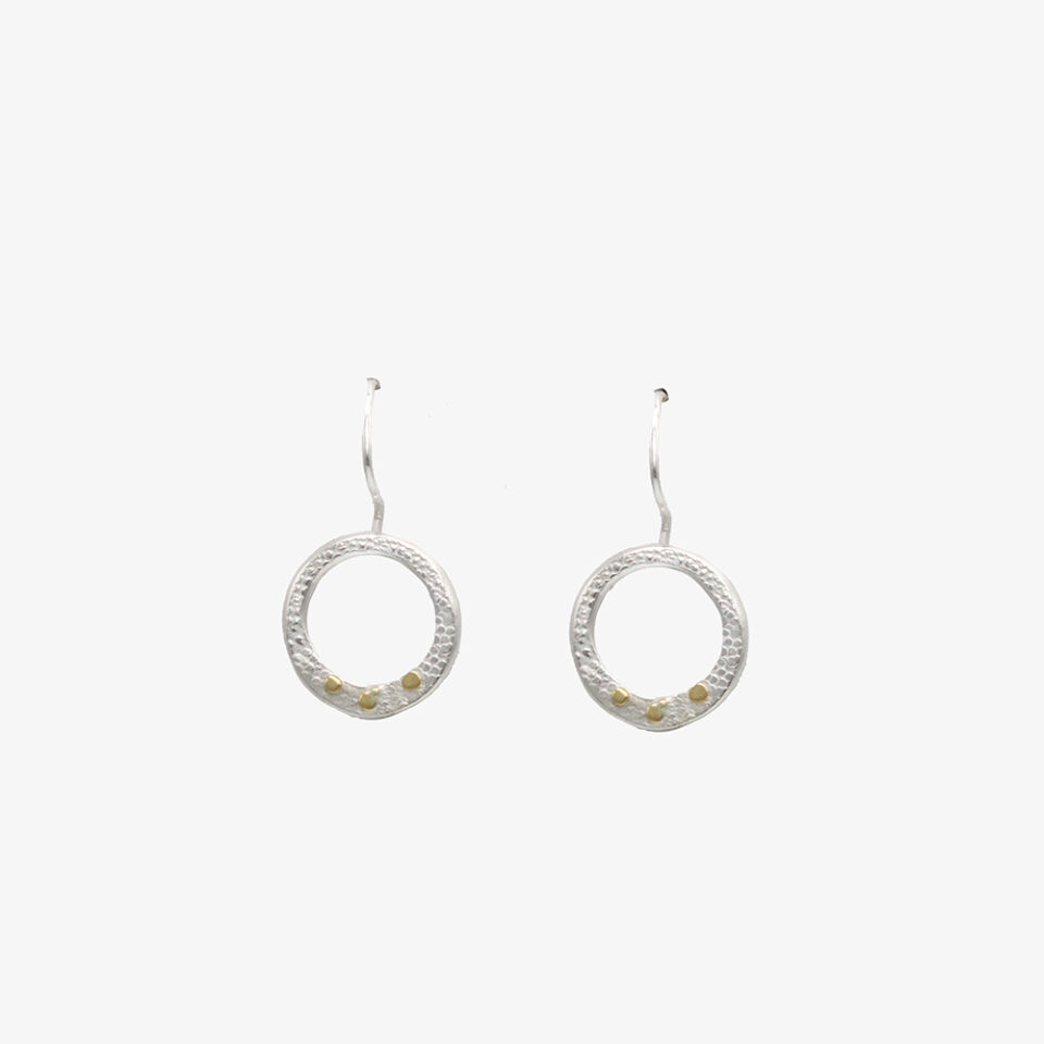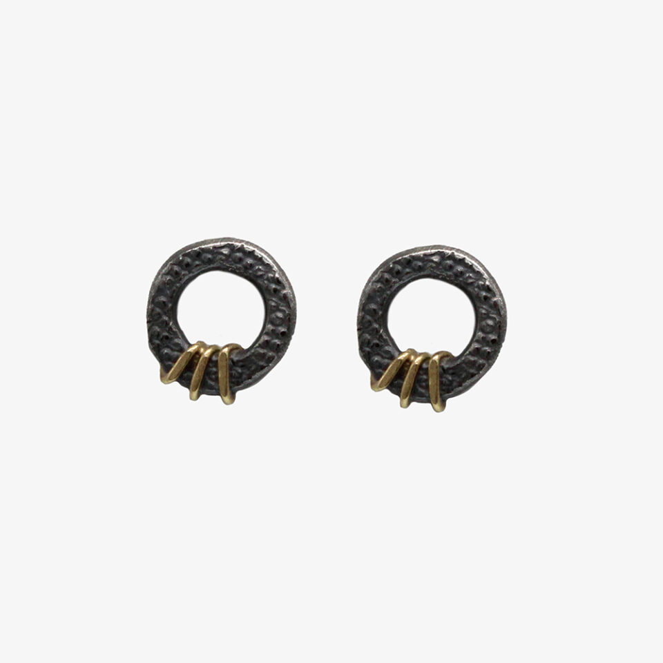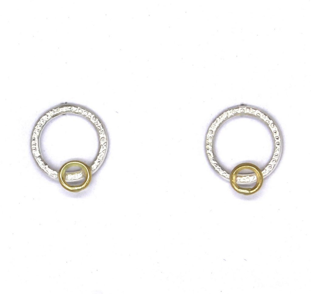 Adele’s design isn’t your run-of-the-mill. She’s always been interested in the natural interplay of different colours of metal, including naturally occurring and chemically altered. She is a big fan of oxidised silver and as a result, her jewellery can take on a more grungy vibe, compared to some of our other designers. The working properties of the media have a significant and creative influence on the final outcome of her jewellery. To quote Adele Taylor “I like the way you can draw on the surface by stamping and embossing. I have always been interested in surface pattern and texture. and I find acid etching a wonderful way of drawing directly onto the metal”.