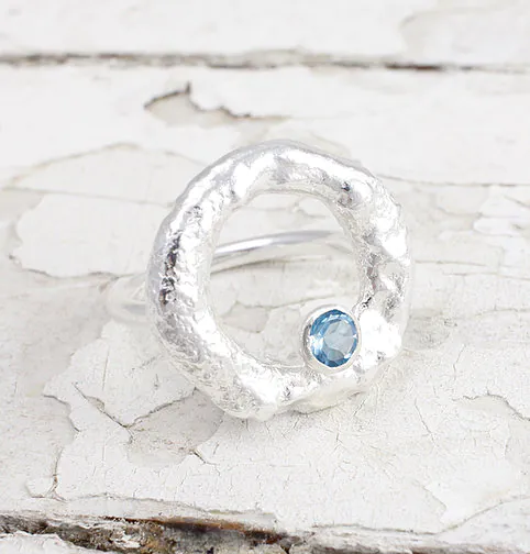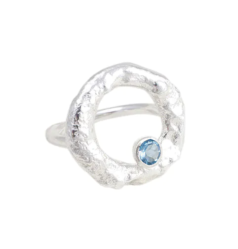 Rustic Ring With Swiss Blue Topaz- Armed & Gorgeous