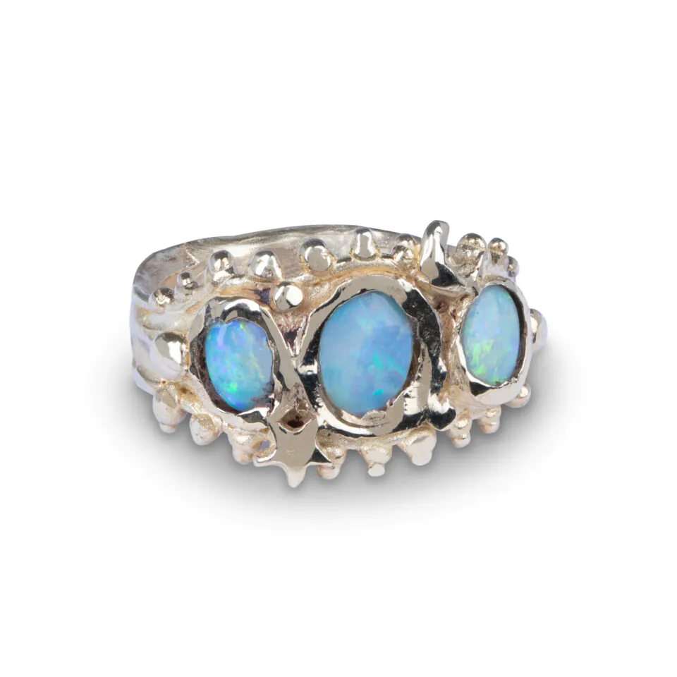 She loves to work with precious stones, in particular custom cut, Australian opals, for which she has an obsession.