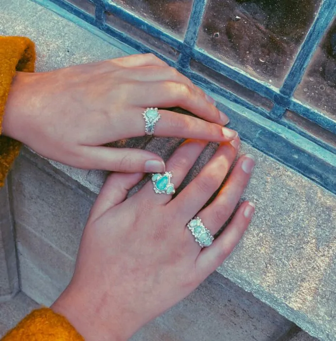 If we had to pinpoint it, we would say her speciality is the signature Millie Savage Ring, of which she has many. Her rings are just completely unique and we really haven’t come across anything quite like them before.