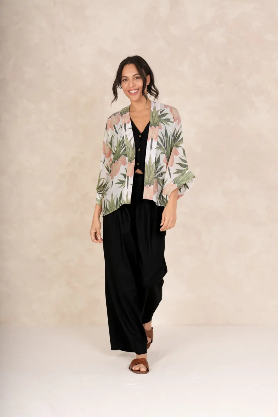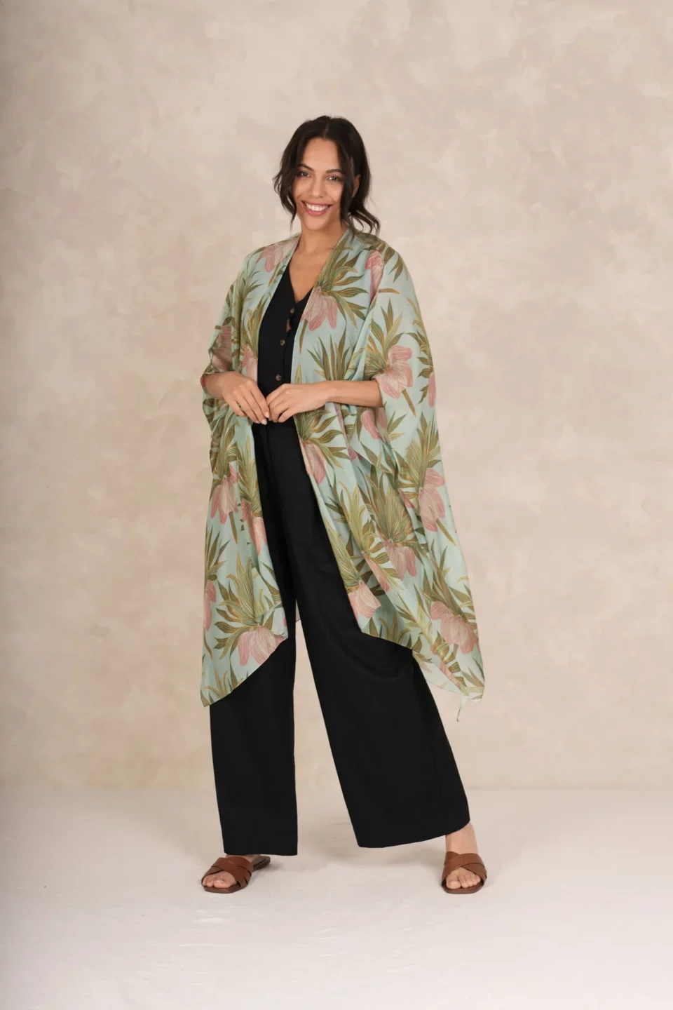 Above all, Indulge in the sheer versatility of One Hundred Stars’ creations. Seamlessly transitioning from day to night with effortless elegance. Whether you’re lounging by the poolside, strolling through sun-dappled streets, or attending a soirée under the stars, our kimonos and gowns are the epitome of refined style and unparalleled comfort.