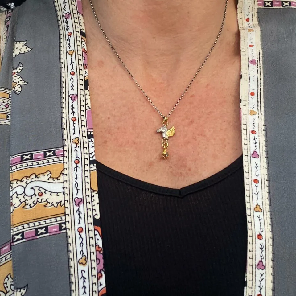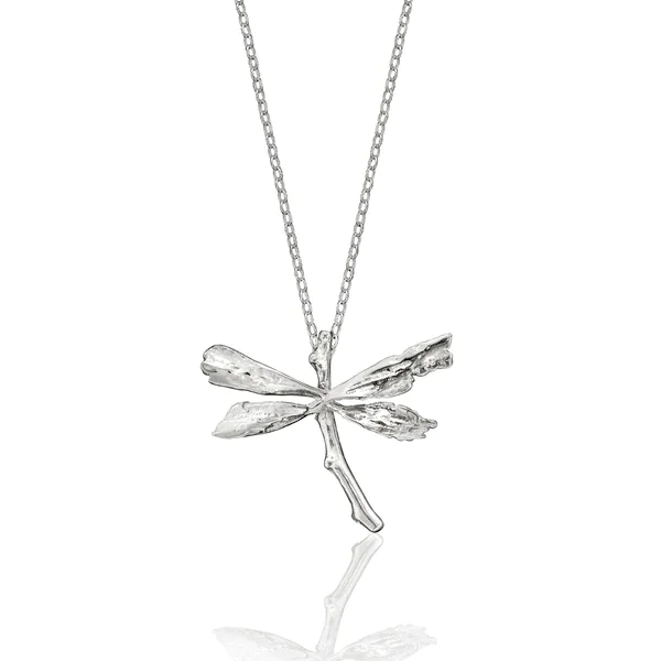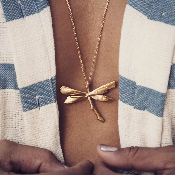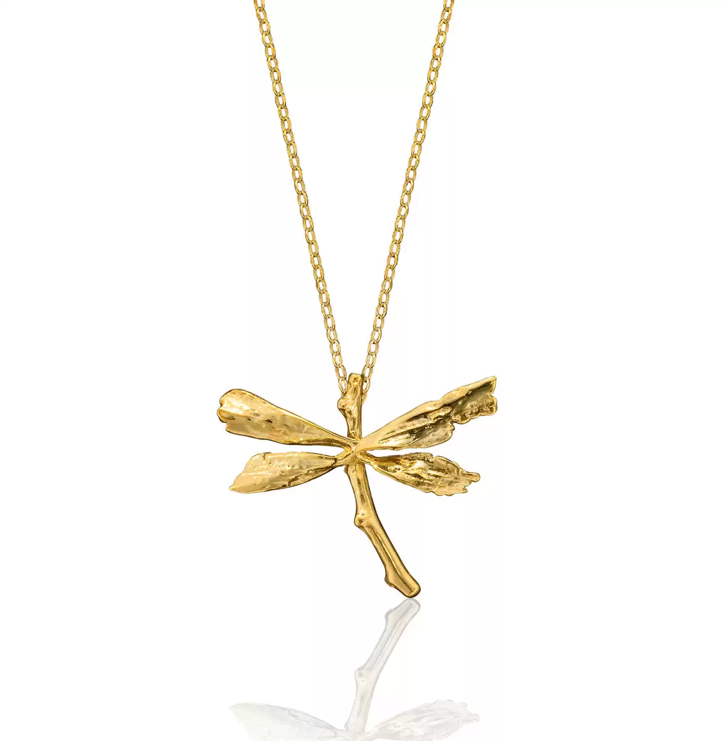 A pendant, where a playful gold plated dragonfly is created from an apple twig body and wings cast from Ash seed leaves.