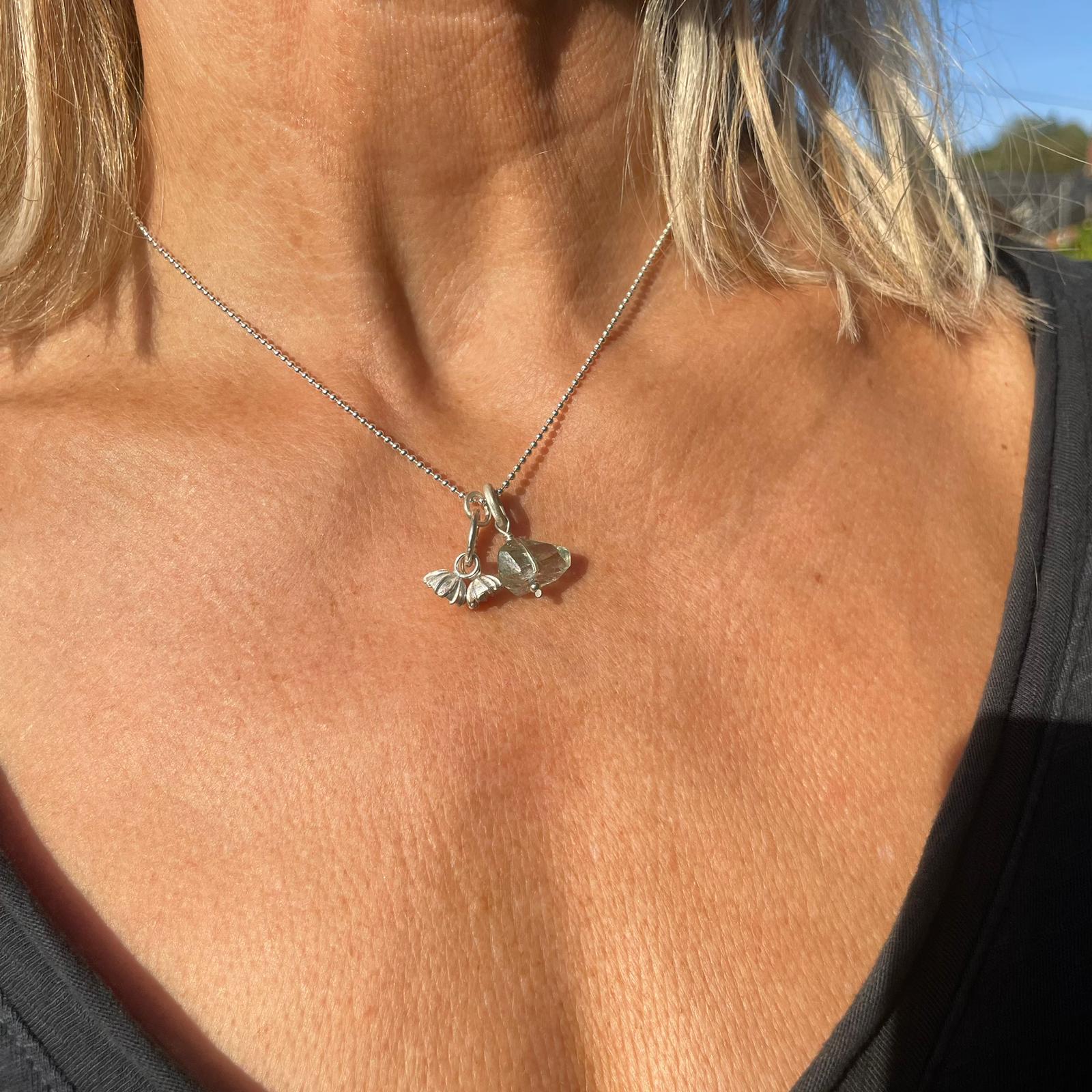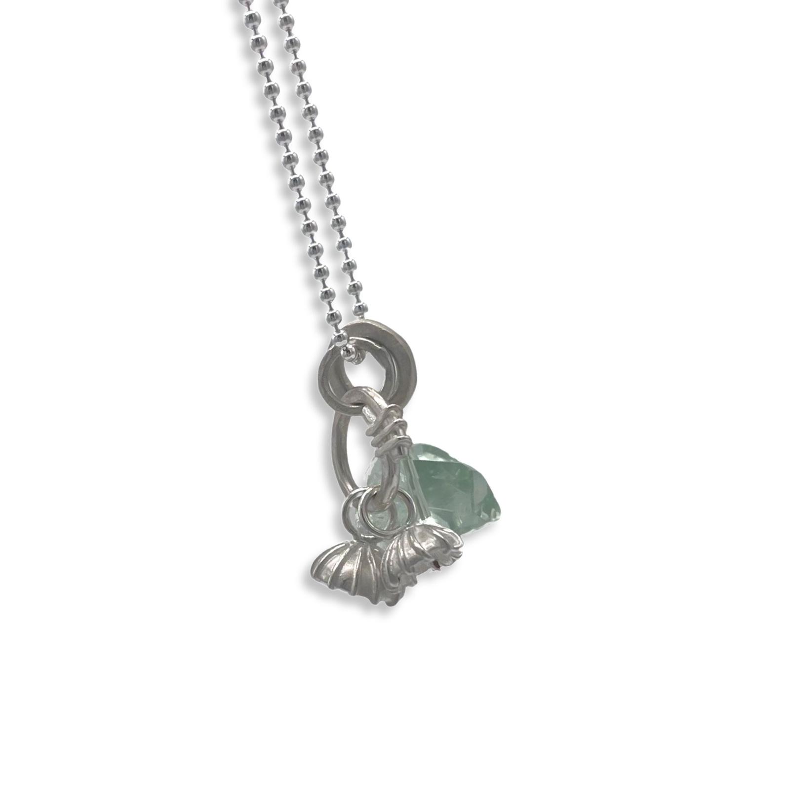 Adele Taylor Necklaces | Spiral Pendant Necklace with Poppy Seeds and Green Amethyst