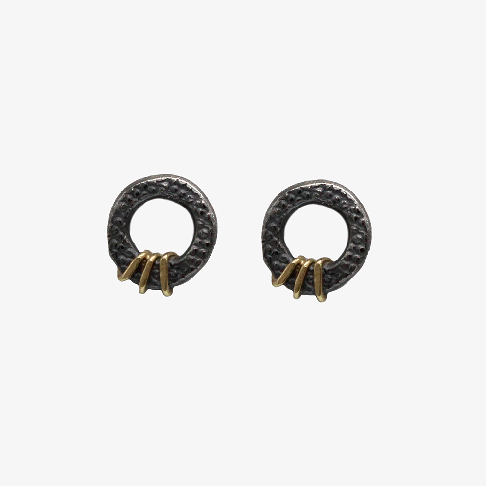 Adele Taylor Oxidised Silver With Gold Line Detail Studs