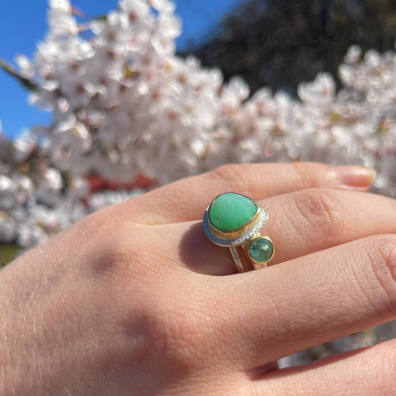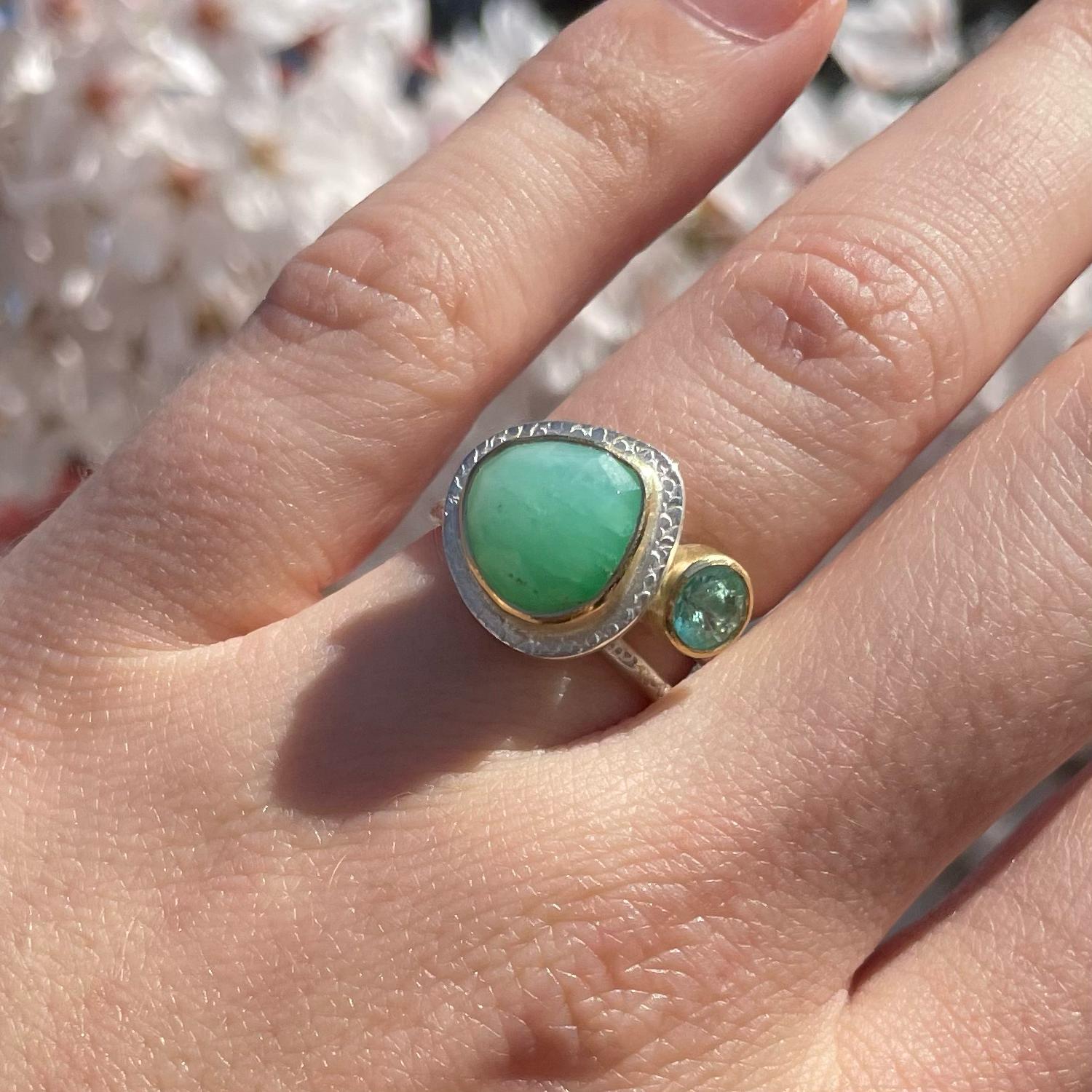 Adele Taylor Chrysoprase & Beryl Ring (18ct Gold & Silver)