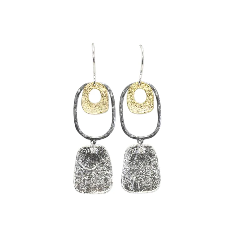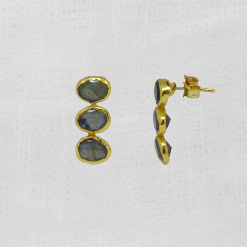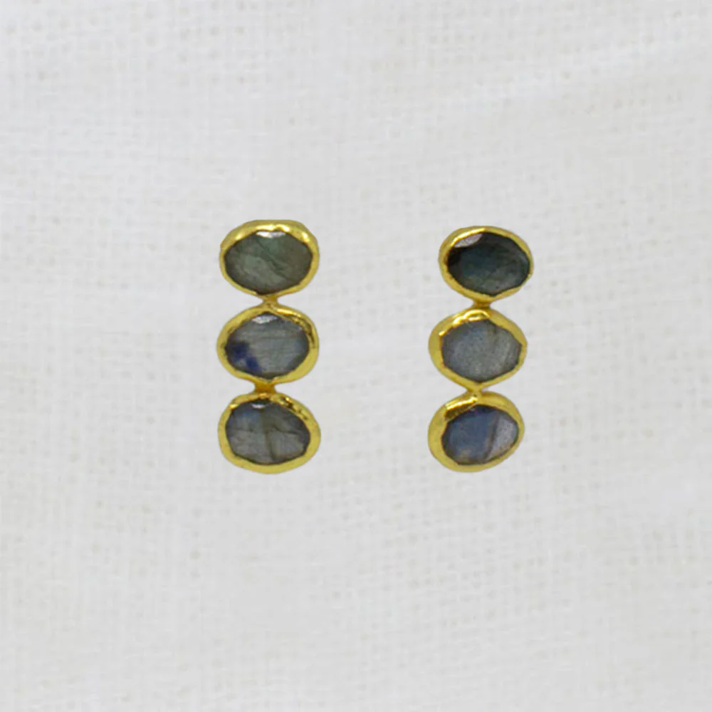 Annie Mundy Triple Gemstone and Gold Organic Stud Drop Earrings
