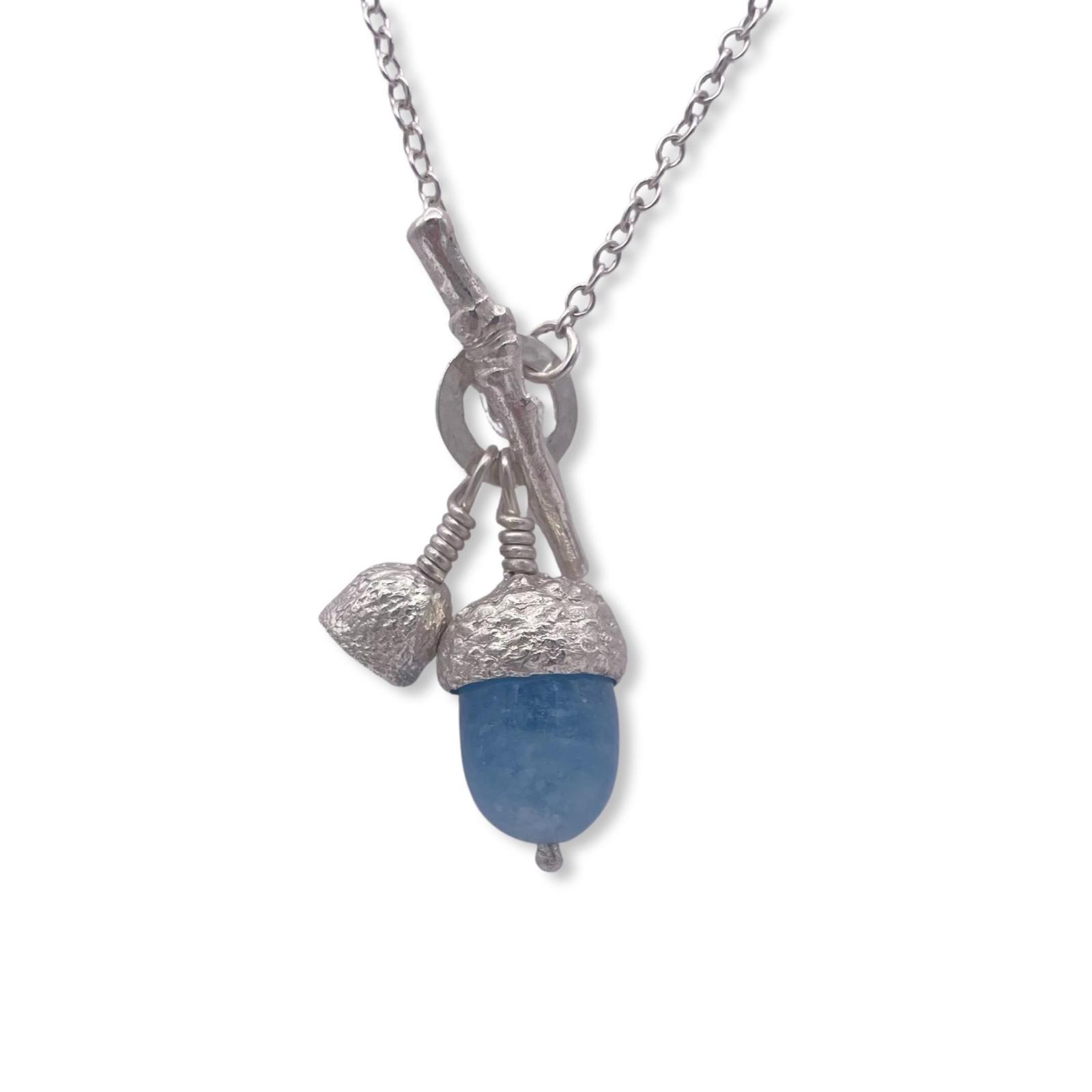 Aquamarine Acorn and Mini Acorn Necklace Silver