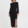 B.Young Shiloh Back Dress beautiful little black dress for any occasion. Stunning fit in a weighted jersey material. With a deep slit and a slightly dipped back perfect for parties, but you could also chuck a big knit over it and your favourite boots for a casual night at friends.