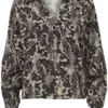 Beautiful stone and black snake print blouse by Byoung with collar, v neck and long sleeves with button fastening cuffs.
