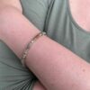 This elegant bracelet features precious baby pearls gemstones set against simplistic and stunning beads of copper, brass and sterling silver. The creative use of geometric and patterned beads adds a tribal and antique element to the piece. This piece would look amazing on its own or layered with our other silver bangles and bracelets, wear with any outfit or style.  Ideal as a gift for friends and family, or as a little treat for yourself this timeless piece is sure to be well received.  Why don’t you have a look at her other pieces and choose the next addition to your collection?