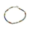This vibrant bracelet features precious gemstones, such as turquoise, amazonite and lapis lazuli which are set against geometric and patterned beads of copper, brass and sterling silver. The overall look includes a really unique contrast of colour and neutral metallic shades, making it both wearable and distinct.