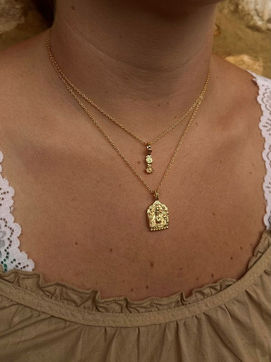 These captivating pendants draw inspiration from authentic medallions, trinkets, and keepsakes that were discovered or gifted to our founder, Liz, during her extended time in India over 30 years ago. Cherished and preserved for decades, these treasured items have been transformed into a collection that resonates with the mystique and charm of the diverse cultures that have shaped its creation.