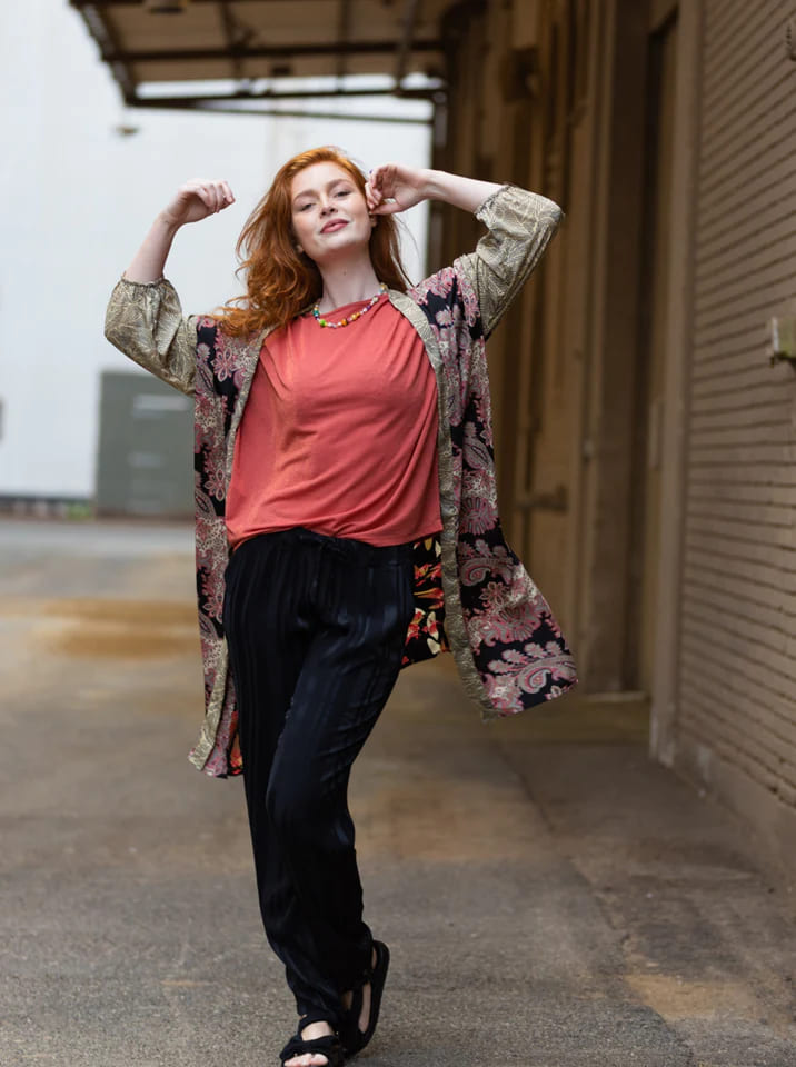 "The kimono jacket was even better than I expected from the photo. It was beautifully wrapped and the quality was amazing. I’ve have lots of positive comments when I wear it. Great service from order to delivery." - Ana M. verified buyer.