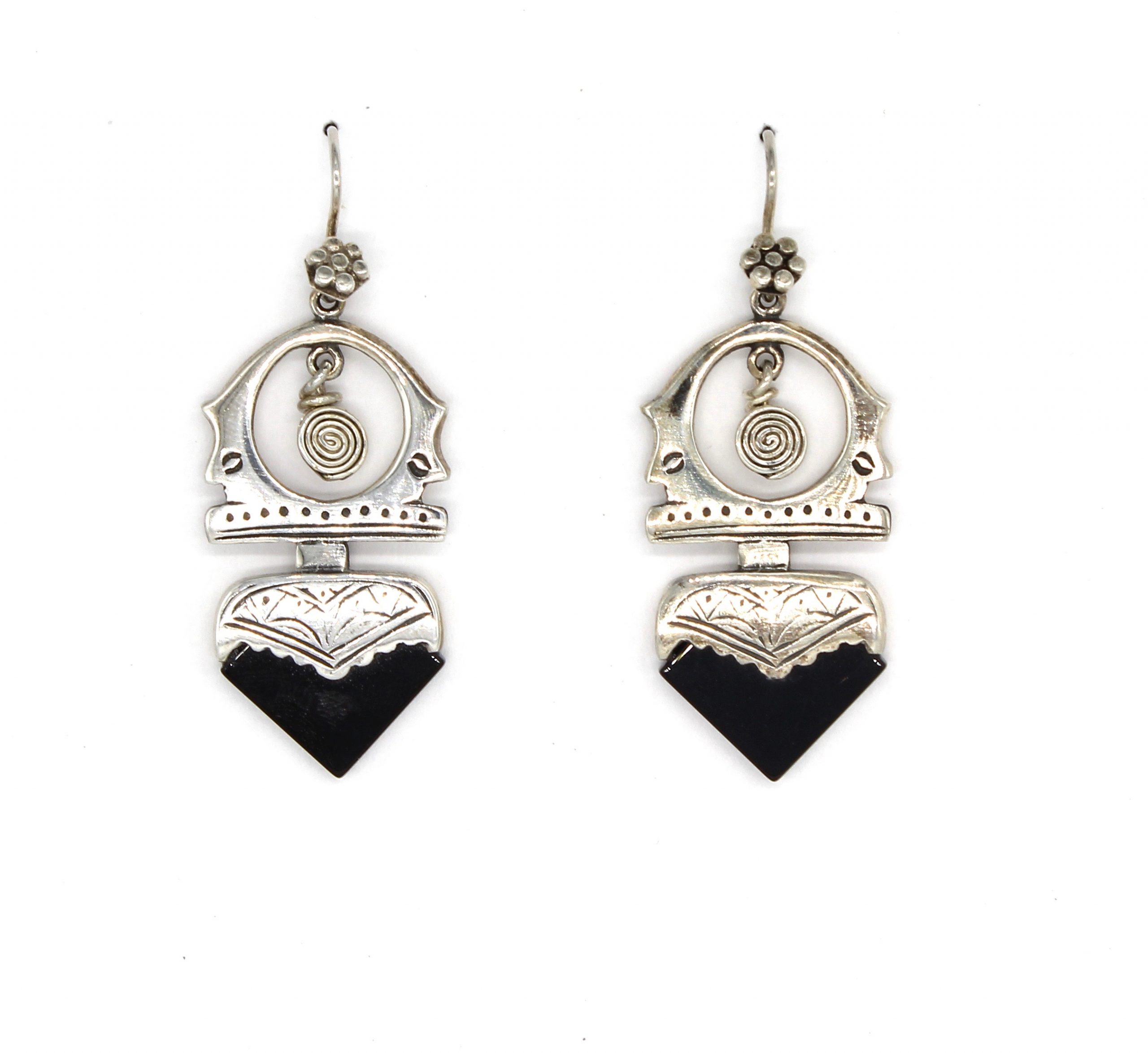 Tribal Design Drop Earrings (Black Onyx or Carnelian)