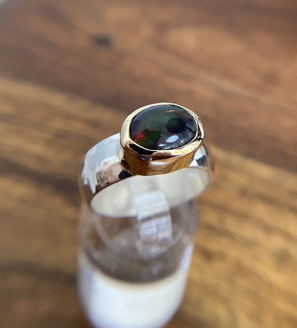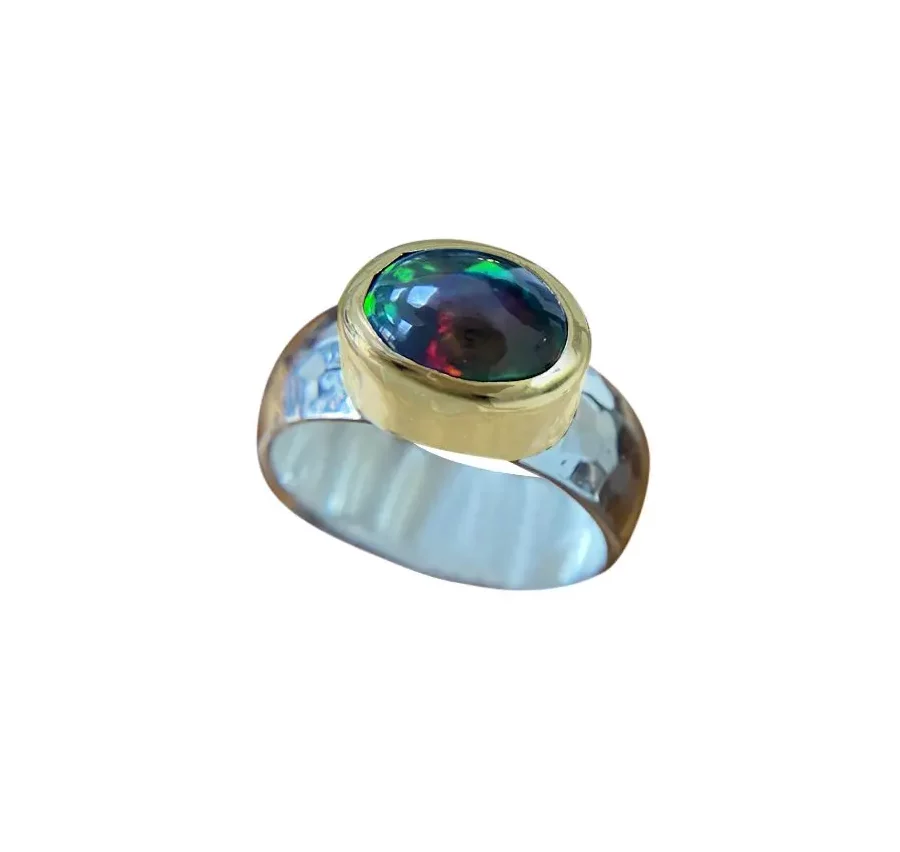 Black Opal Ring set in 9ct Gold on Silver Band