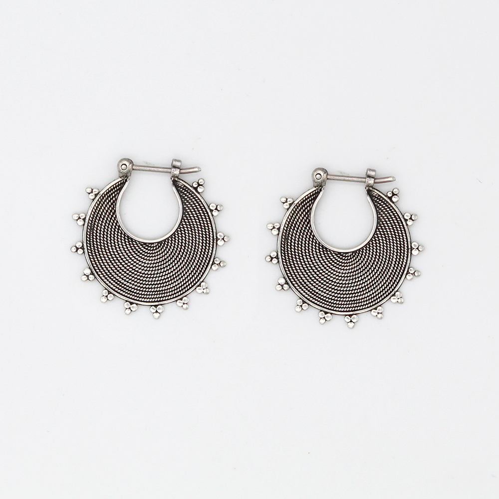 Wirework Oxidised Silver Boho Hoops