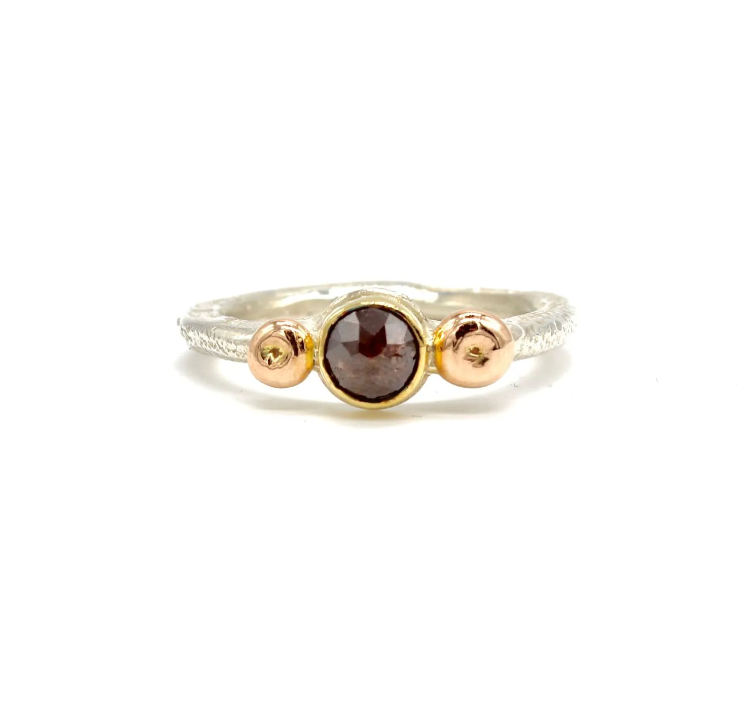 Brown Salt and Pepper Diamond Ring with 9ct Rose Gold Bobbles.. All the stones are handpicked by this lovely British Designer, with each ring in mind.