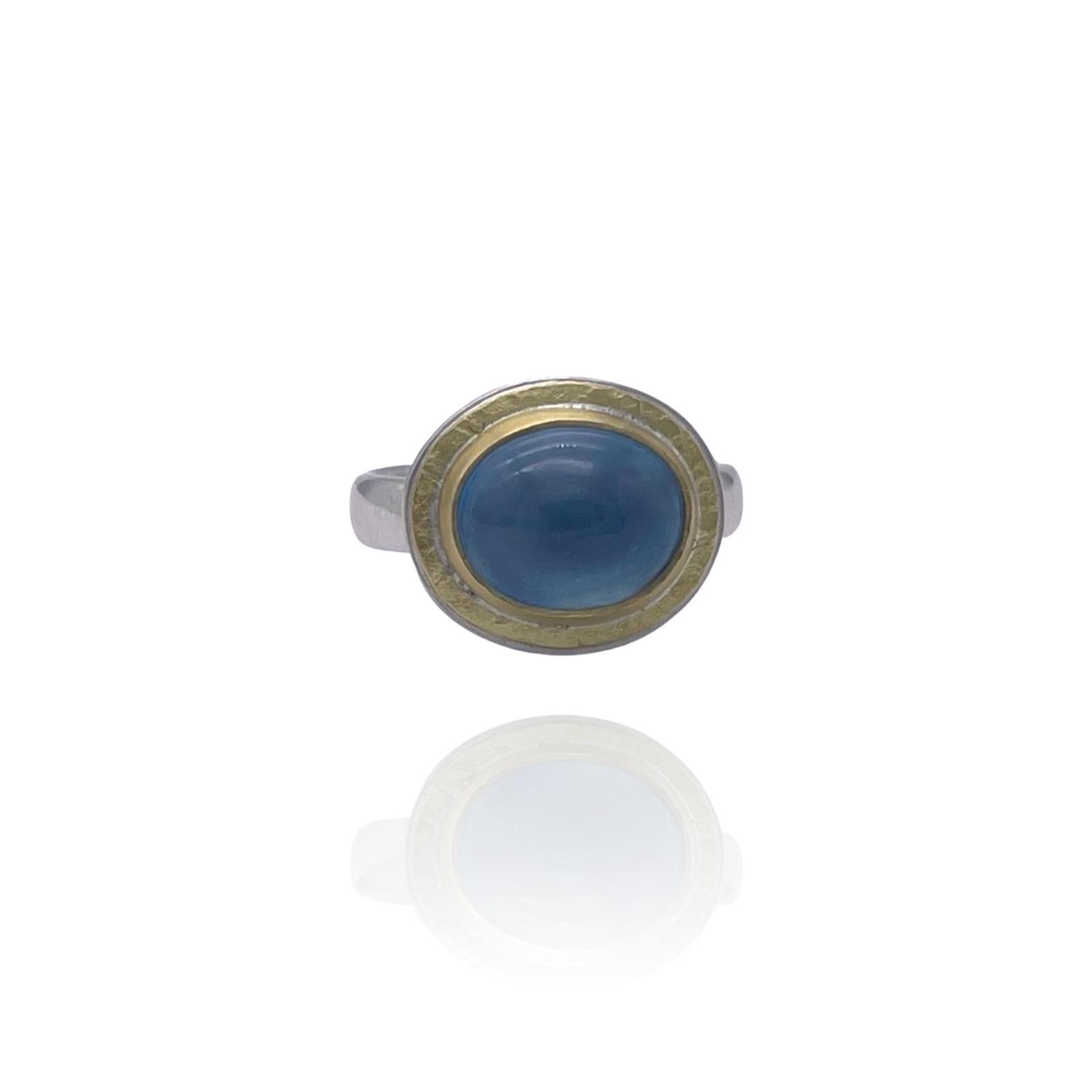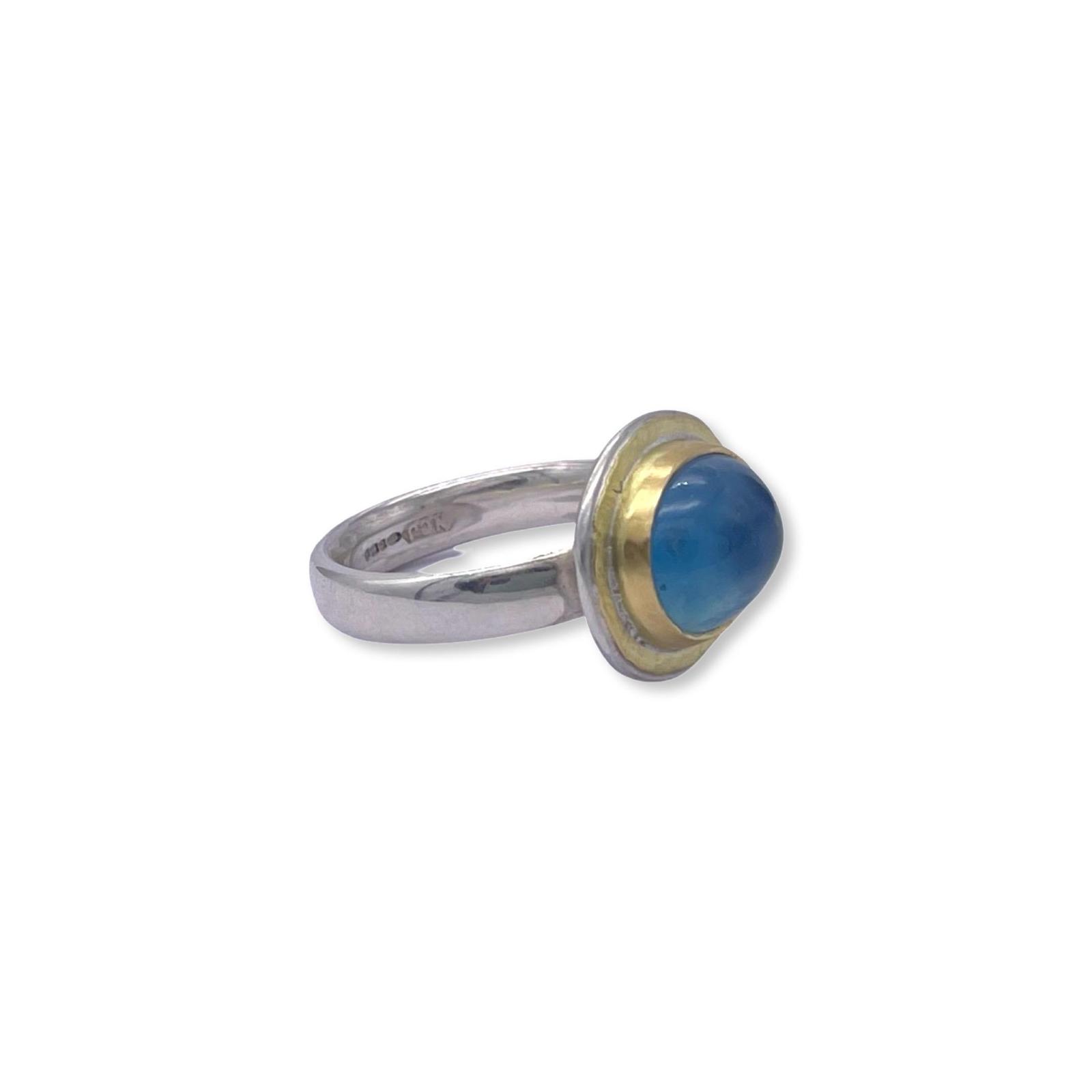 Silver & 9ct Gold Cabochon Aquamarine Ring