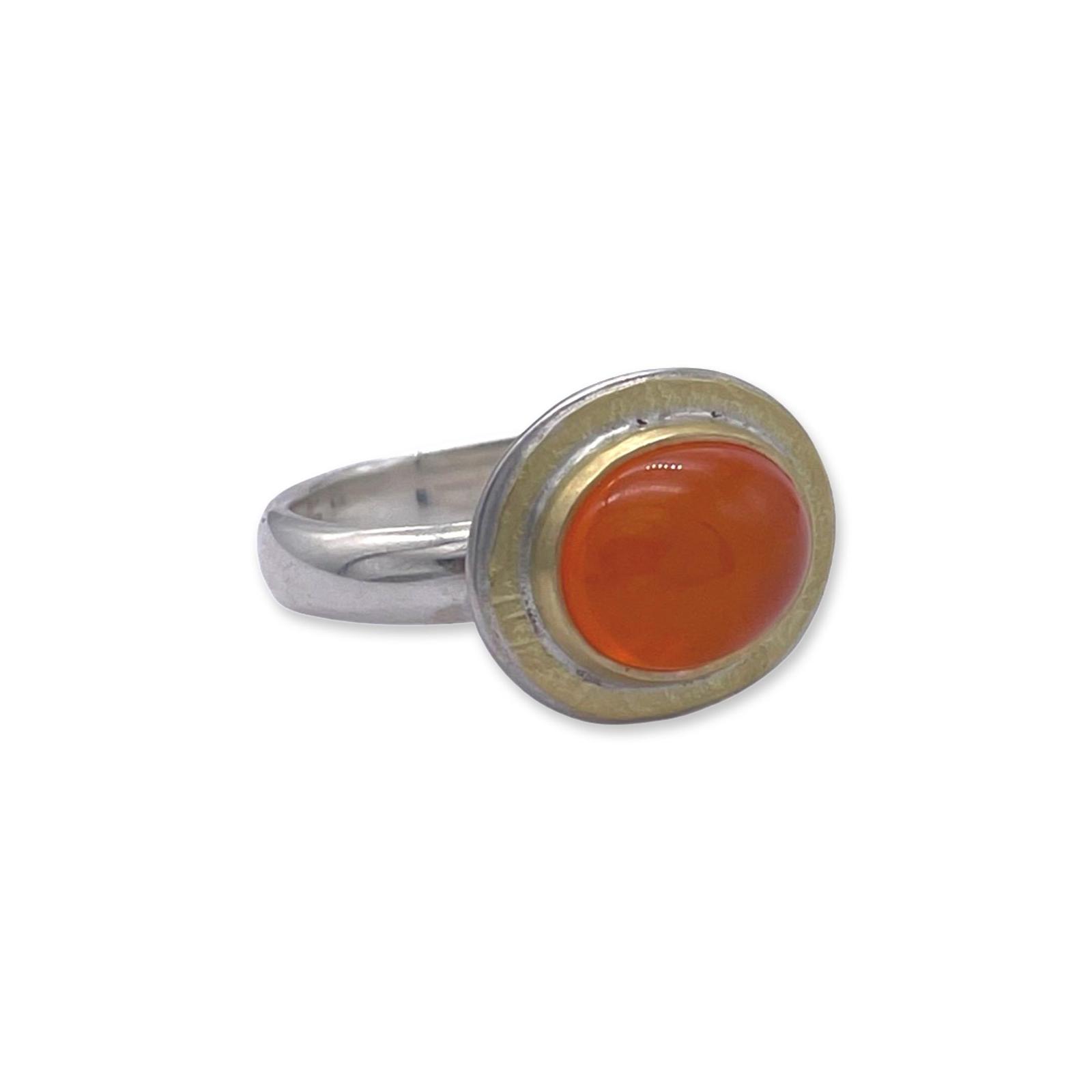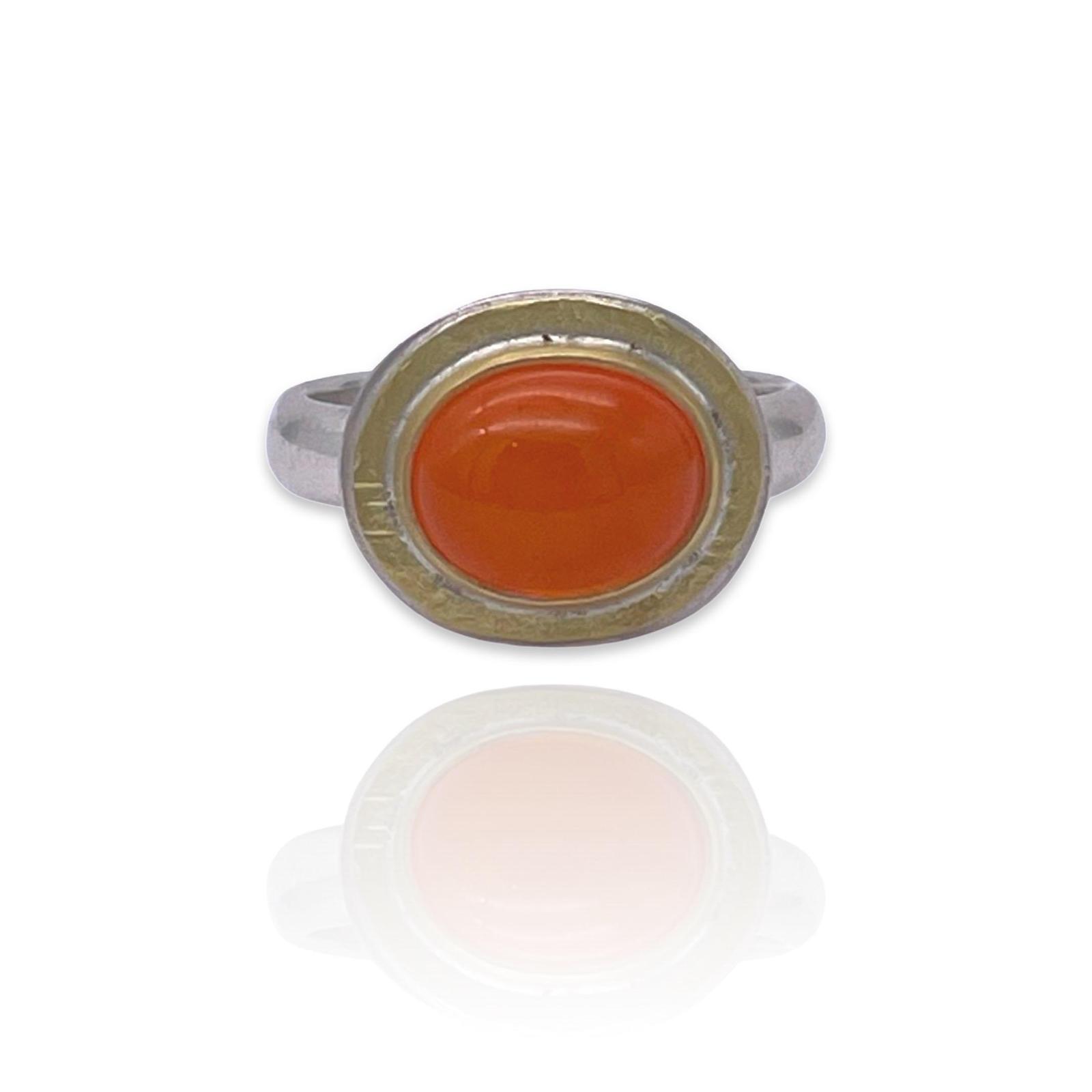 18ct Gold & Silver Cabochon Fire Opal Ring