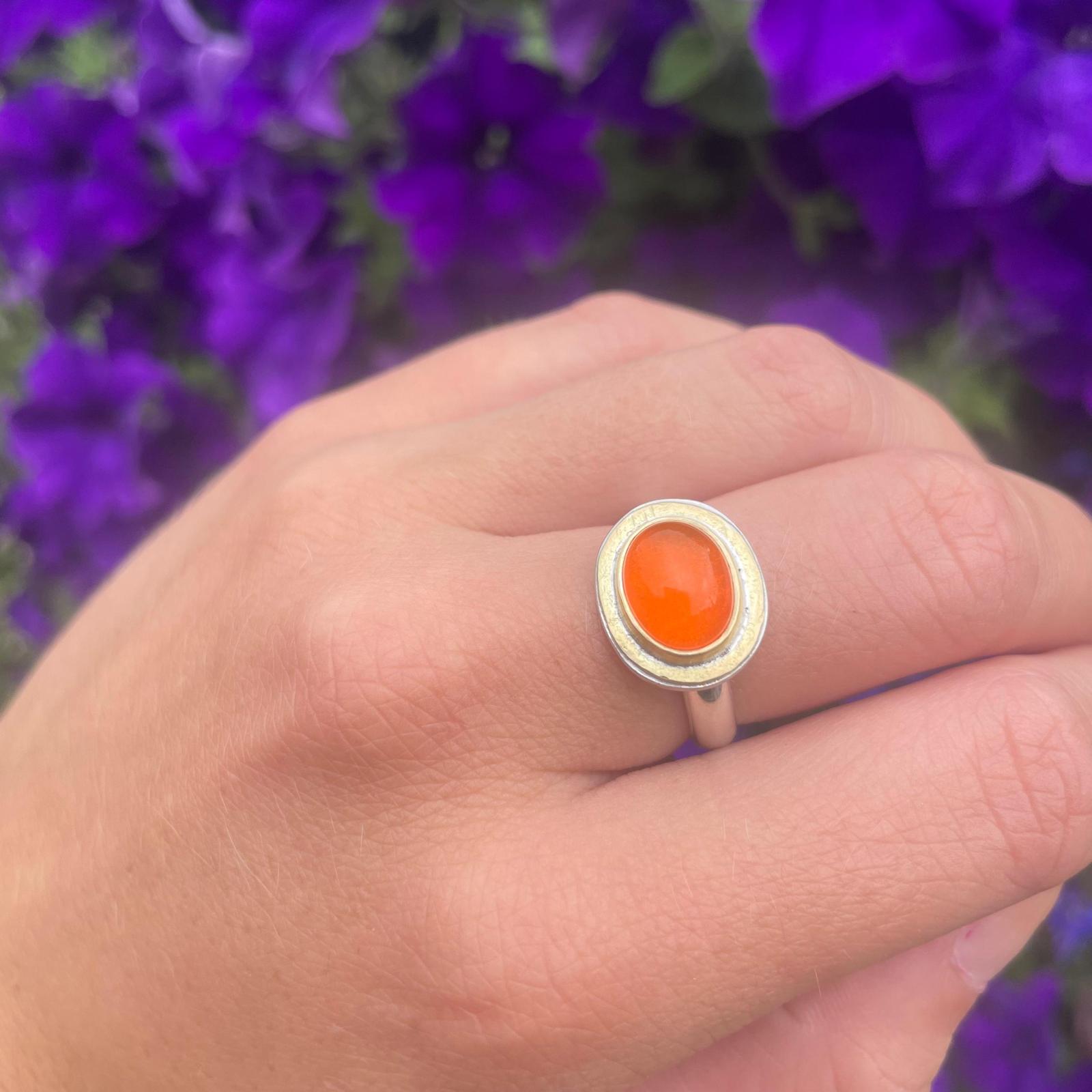 A truly amazing fire opal set in 18ct Gold with a gold surround and held on a silver band. This fiery stone fittingly comes from the depths of ancient volcanoes. It’s a product of extreme pressure and heat. Ancient Civilizations used it for jewellery and artwork and there name for it was “quetzalitzlipyollitli” which translates to “the stone of the Bird of Paradise” Created by a female British designer in her hoe workshop, you literally will love to wear this piece of jewellery, tam it with your jeans and tee or take it for a night out with a black dress and killer heels, it will be a real talking point. It is a ring that will be in your collection then handed down for generations to come. Treat yourself or purchase for a loved one they won’t be disappointed.