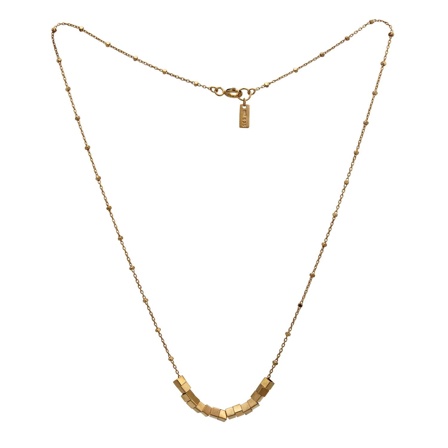 The Metropolis Cubes Necklace is a delicate and modern classic, combining intricate detail with contemporary style. The light shimmers on the multifaceted cubes as they move with the wearer, which is echoed by the cube detail on the chain.