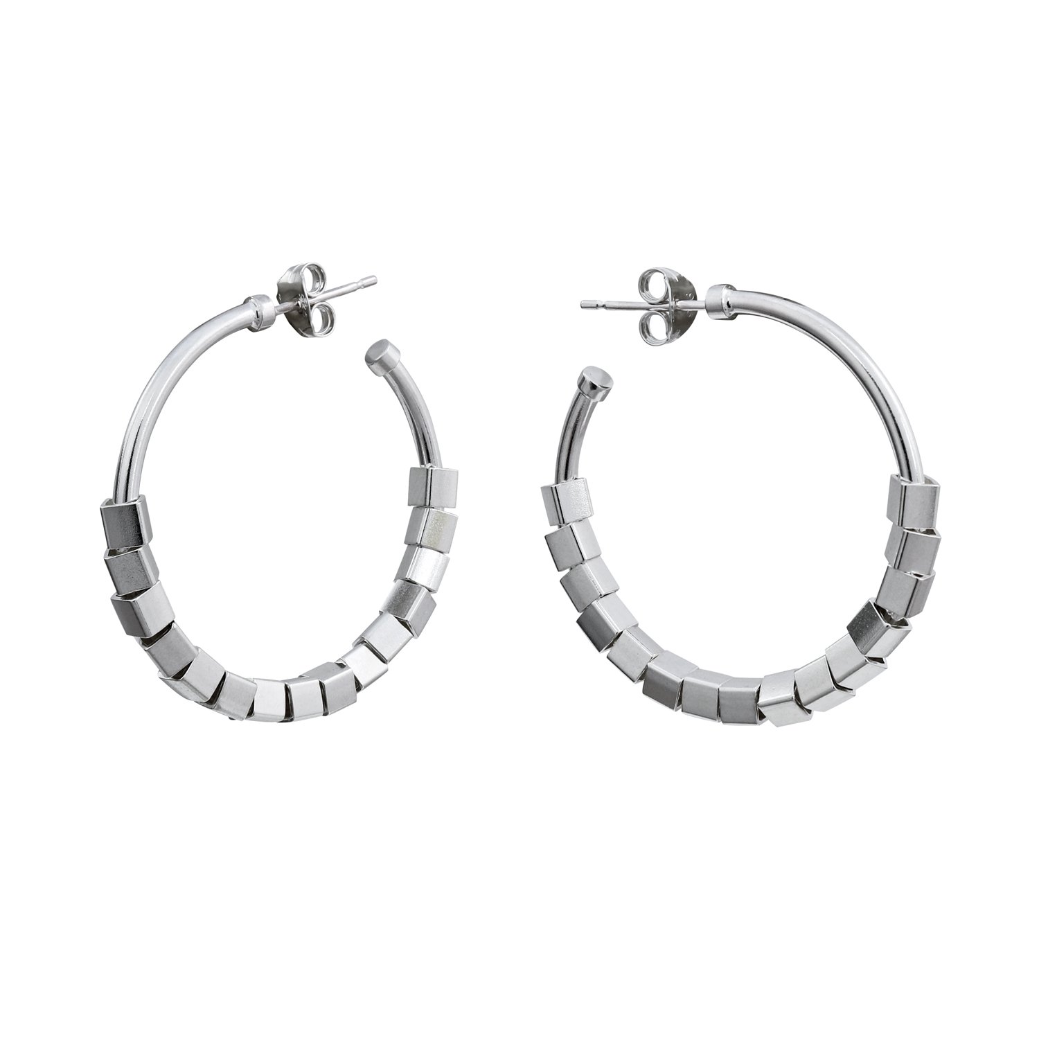 The Metropolis Large Cubes Hoop Earrings are a stunning contemporary take on the statement hoop earring. Both timeless and modern, the cubes glide and flow with the movements of the wearer, creating an iconic look that is a joy to wear. They are made from sterling silver with the option of a gold vermeil finish.