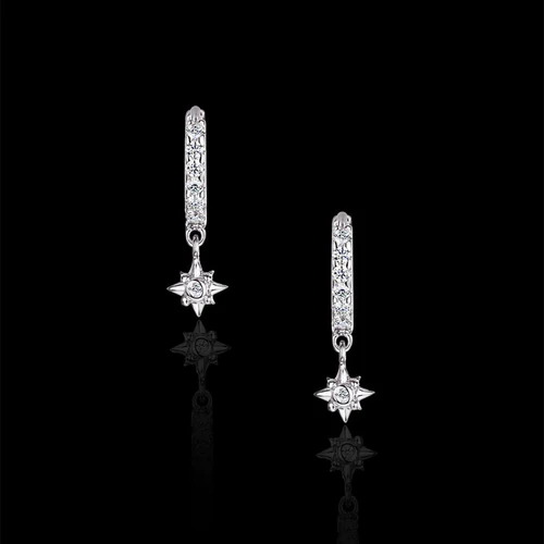 These beautiful hinged huggie hoop earrings are available in Sterling Silver or Gold Plated Silver. They feature Swarovski crystals pave set with a twinkling star charm. If you love a bit of sparkle like Zoey then these are definitely the earring for you, they would look fab teamed with the starry night stud creating your own stack or starry night necklace. From day to evening wear you will delighted to own any piece from this gorgeous collection. Purchase for yourself or a loved one you will not be disappointed.