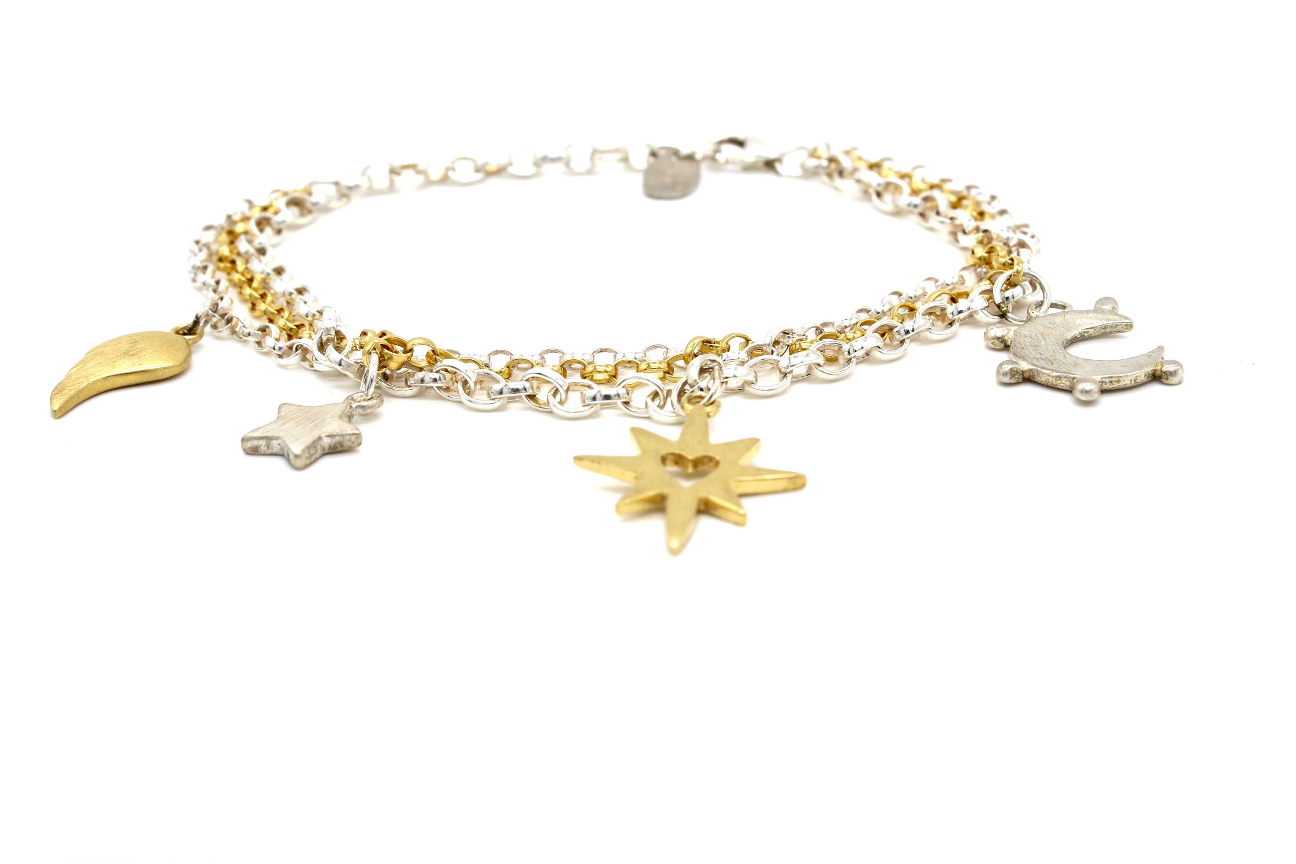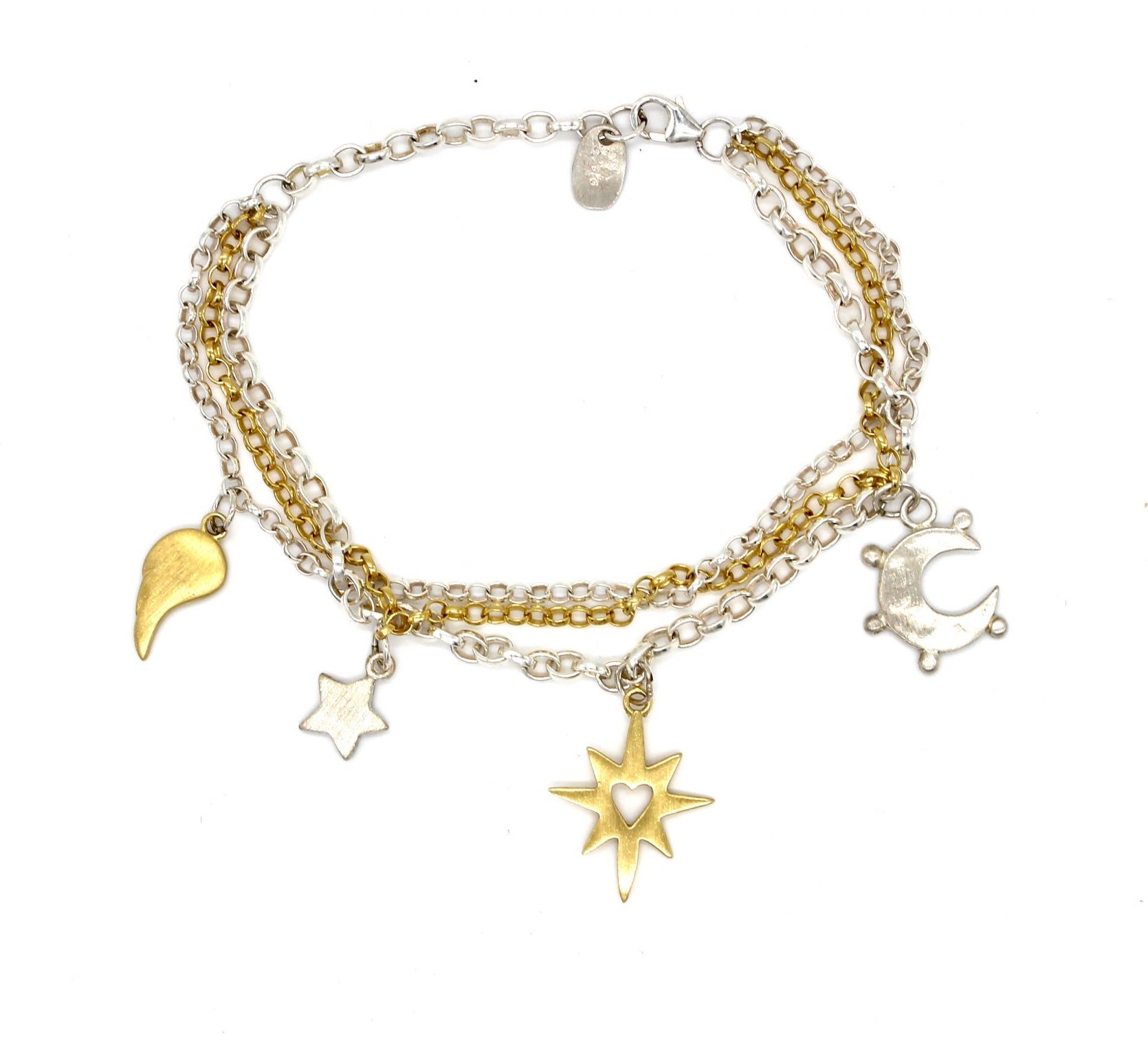 Celestial Multi Chain Charm Bracelet (Sterling Silver and Gold Plate)