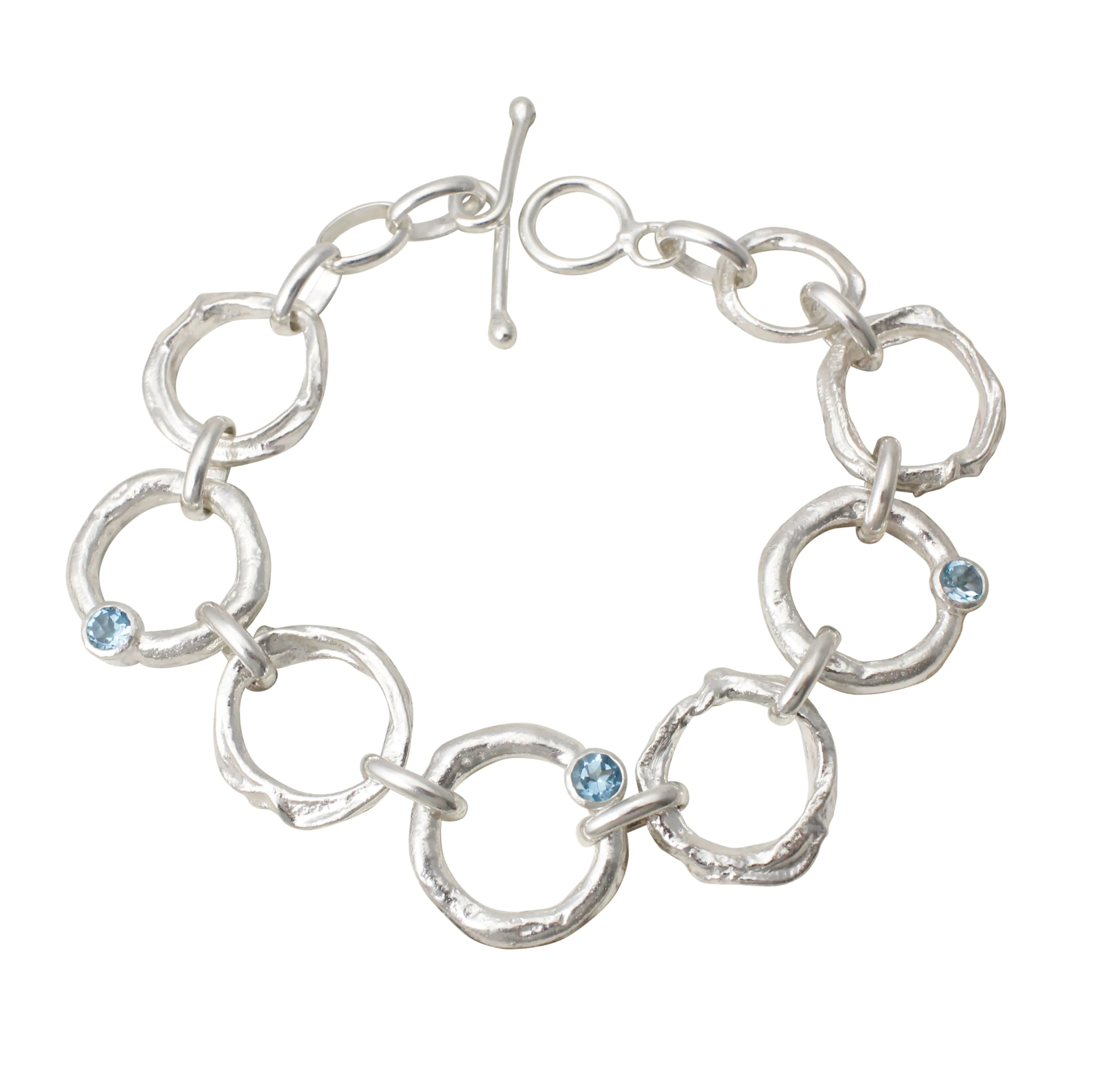 • Brief Description: This chain-link bracelet is crafted from sterling silver and the swiss blue topaz stones add some extra sparkle.