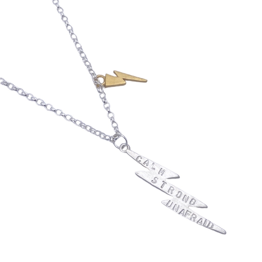 Chambers & Beau Lightening Bolt Necklace Calm, Strong, Unafraid