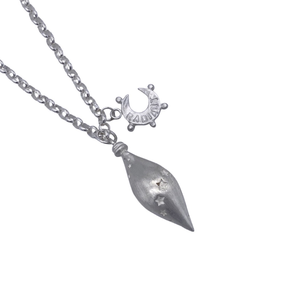 Chambers & Beau C- Celestial Tear Drop Necklace with Super Nova Charm (Silver)