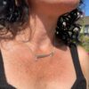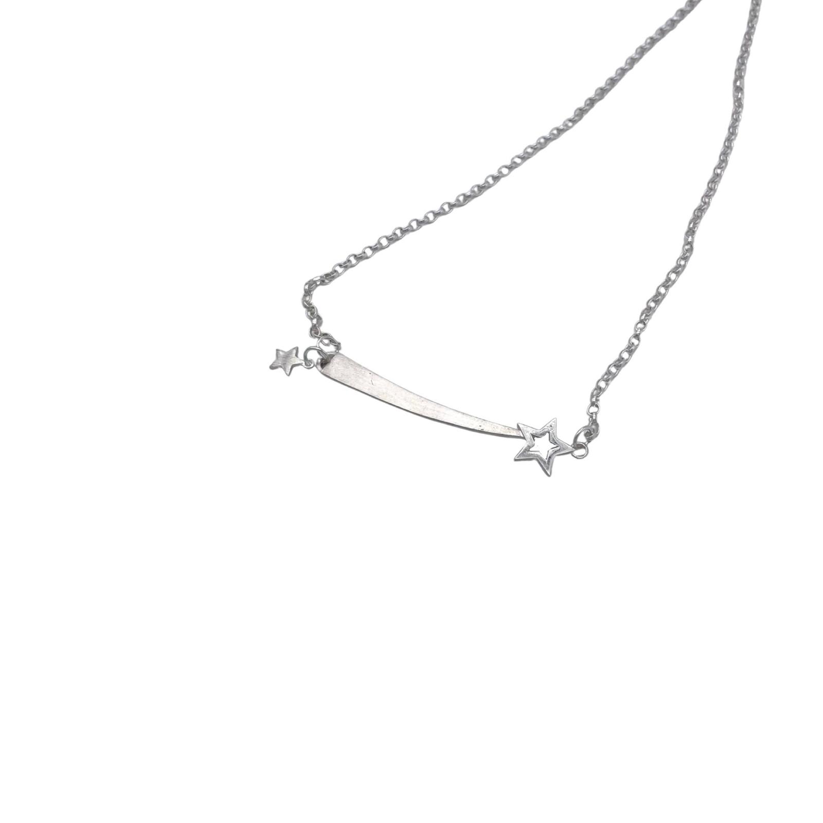 Fabulous Shoot For The Stars Necklace in Silver with silver mini star dangling cutely off one end of the shotting star, this piece has ben left plain (No Words) enabling you to master the art of layering your neck candy by starting with this necklace. Check out the other pieces by this Female British Designer for layering ideas. Treat yourself or buy as a gift for a friend or loved one.