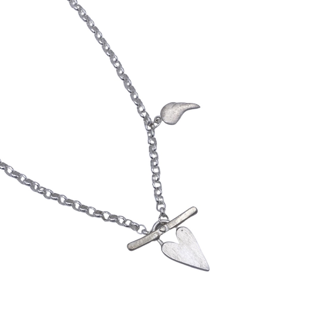 Chambers & Beau – T-Bar Lovelock Necklace With Angel Wing (Silver)