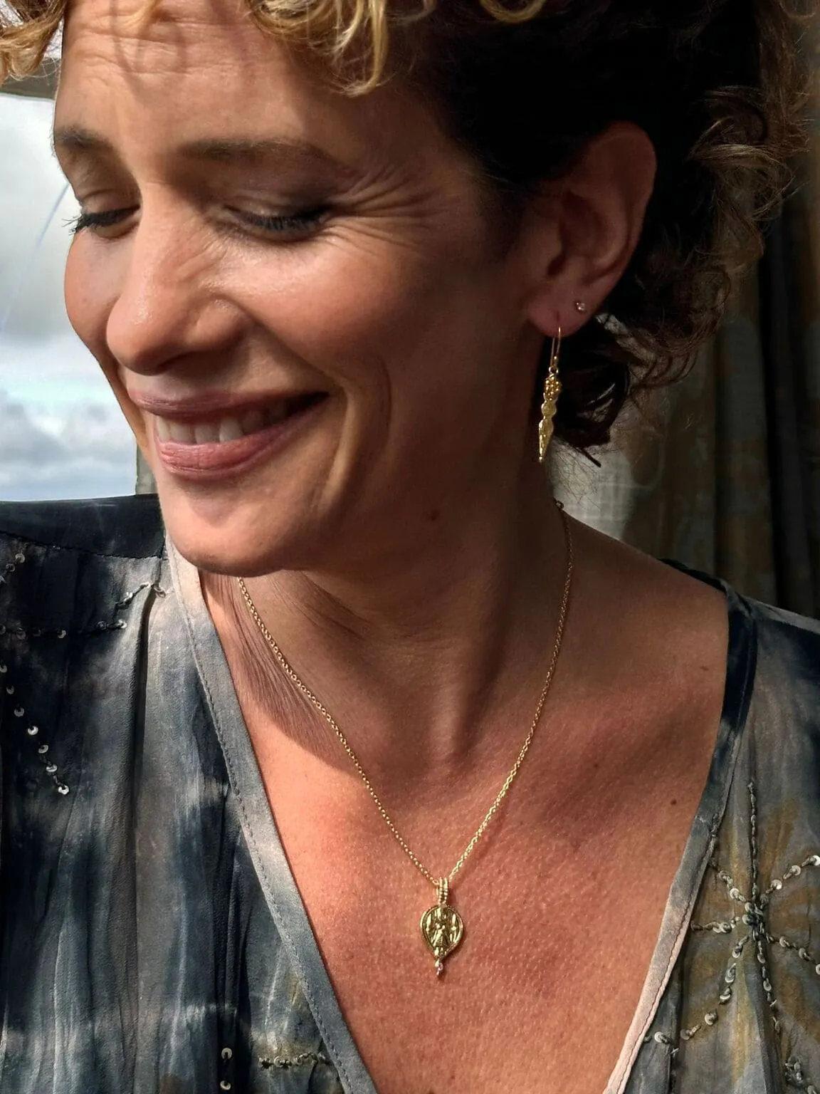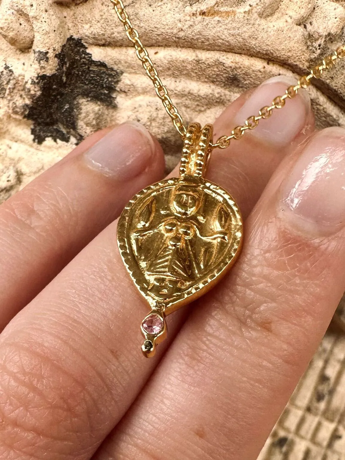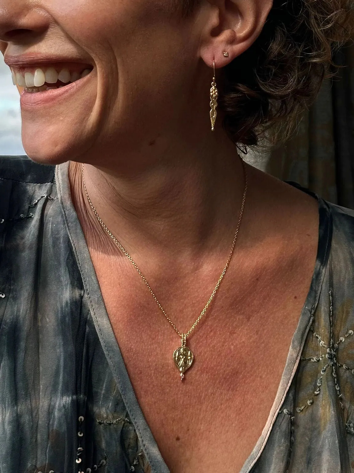 These captivating pendants draw inspiration from authentic medallions, trinkets, and keepsakes that were discovered or gifted to our founder, Liz, during her extended time in India over 30 years ago. Cherished and preserved for decades, these treasured items have been transformed into a collection that resonates with the mystique and charm of the diverse cultures that have shaped its creation.