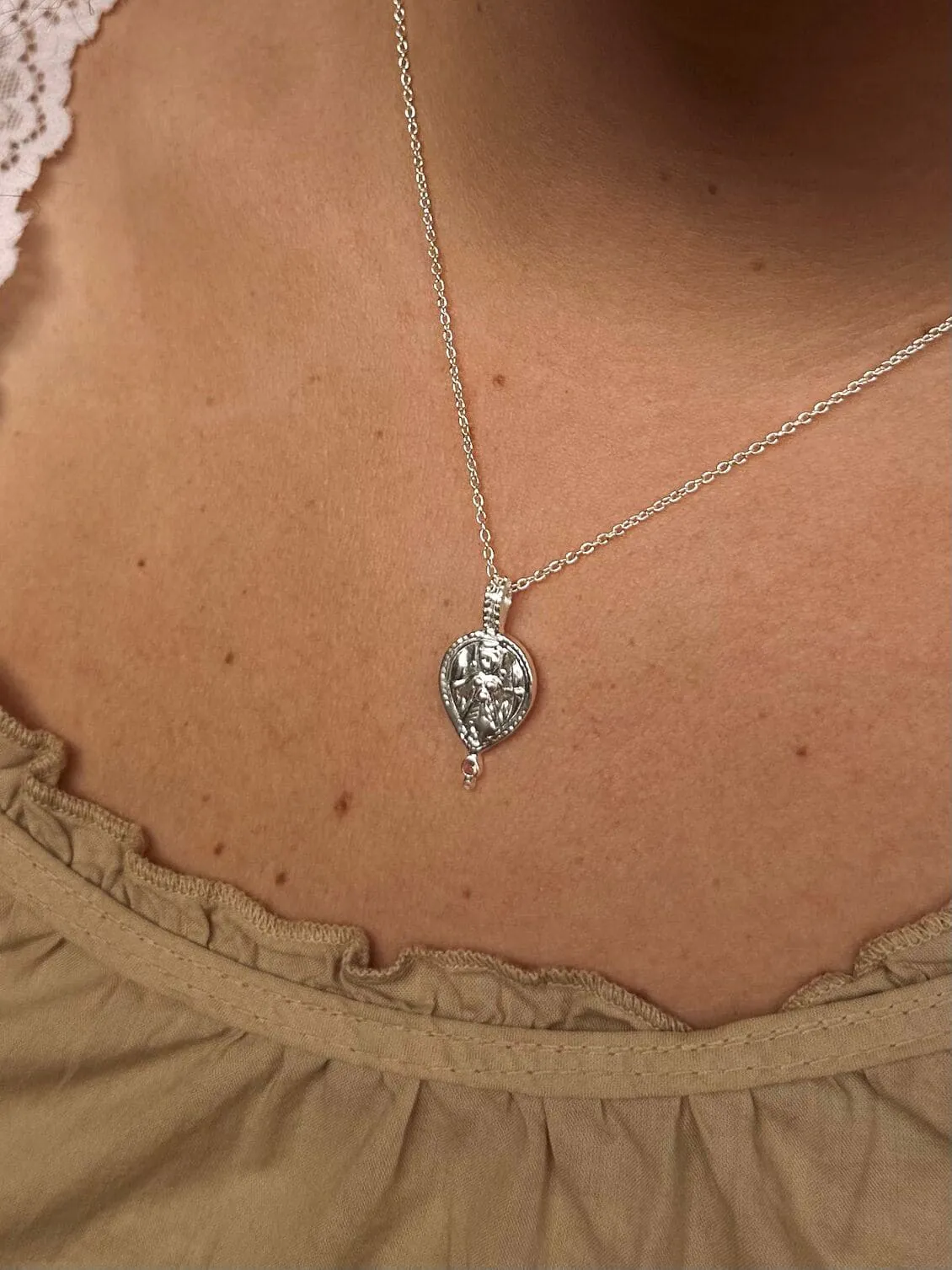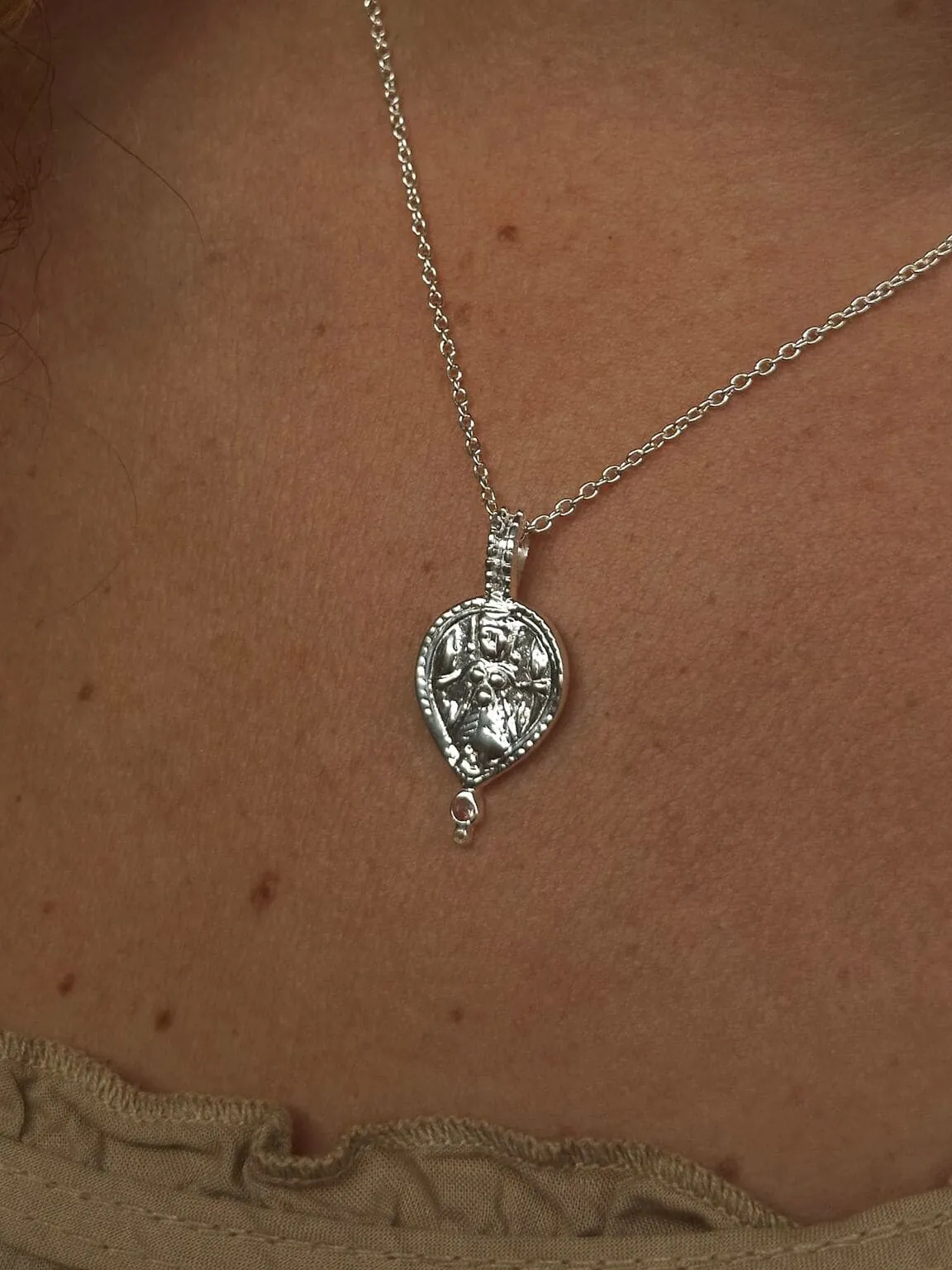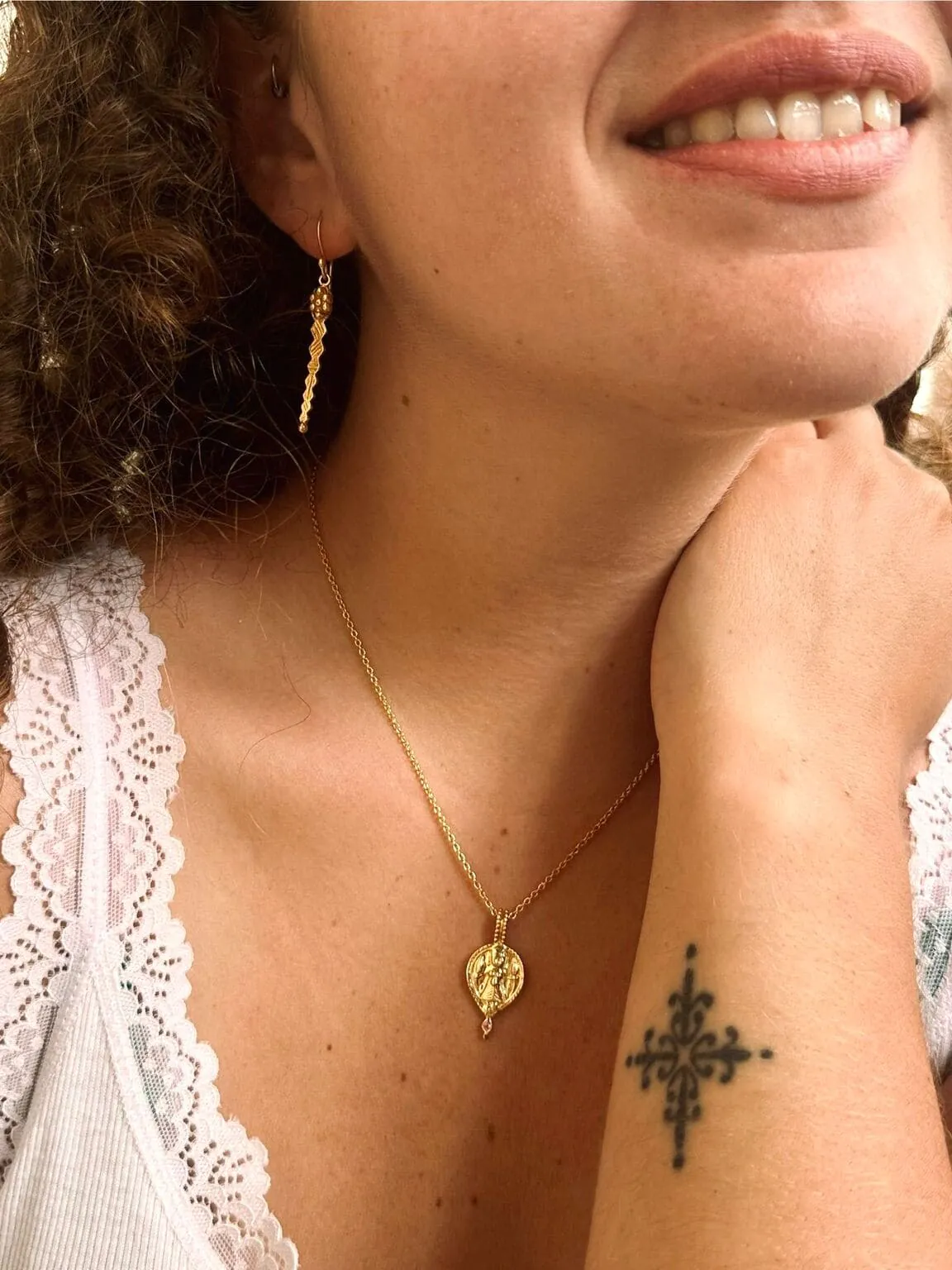 These captivating pendants draw inspiration from authentic medallions, trinkets, and keepsakes that were discovered or gifted to our founder, Liz, during her extended time in India over 30 years ago. Cherished and preserved for decades, these treasured items have been transformed into a collection that resonates with the mystique and charm of the diverse cultures that have shaped its creation.
