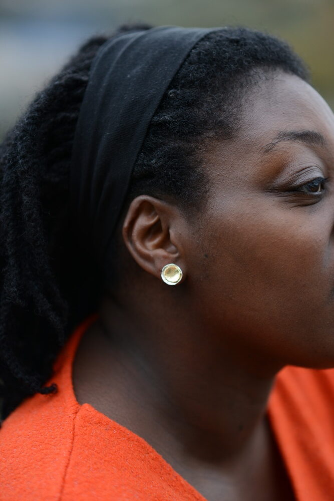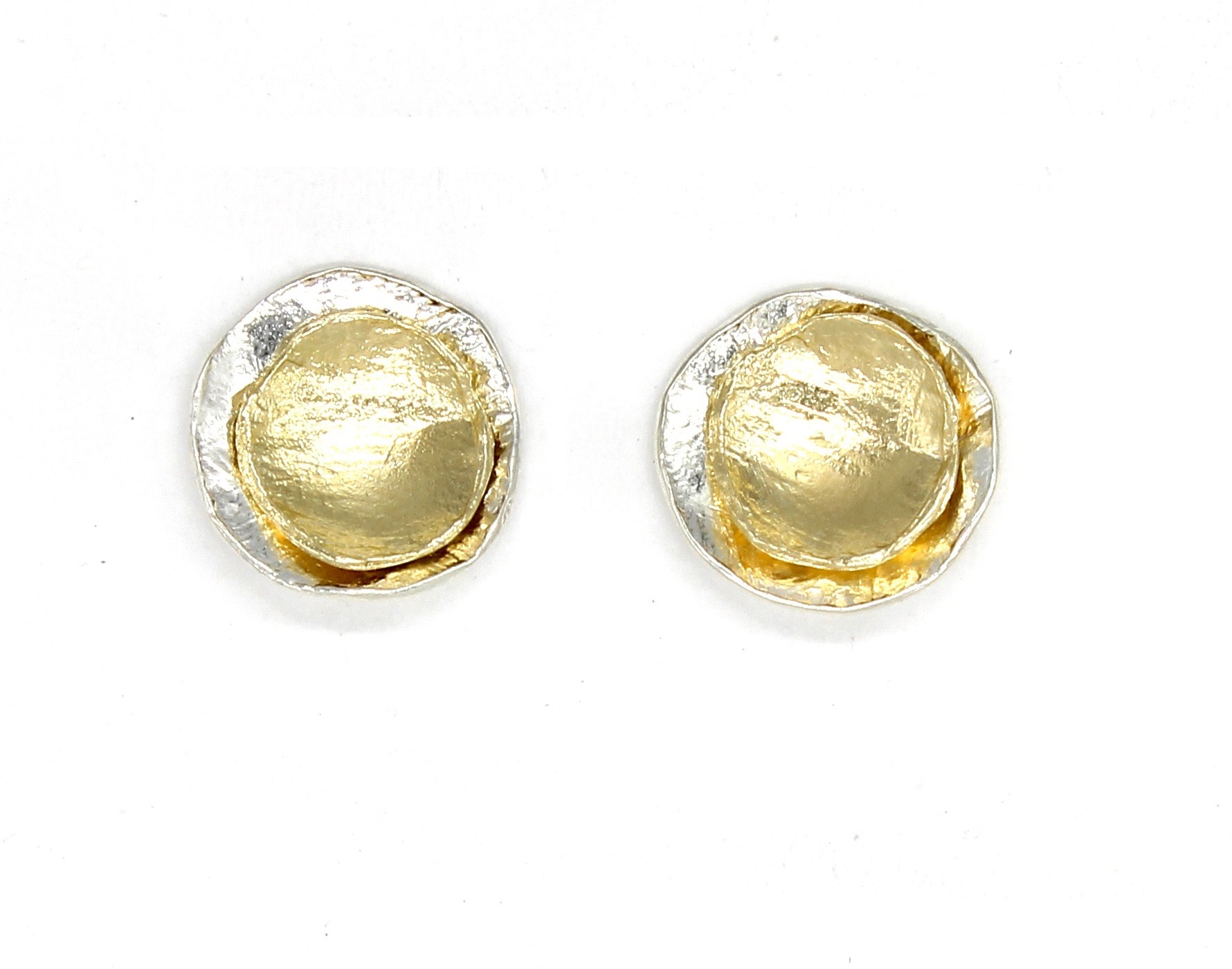 Medium, irregular sized organic sterling silver studs with a textured and glossy golden layer upon each. Find the matching necklace here.