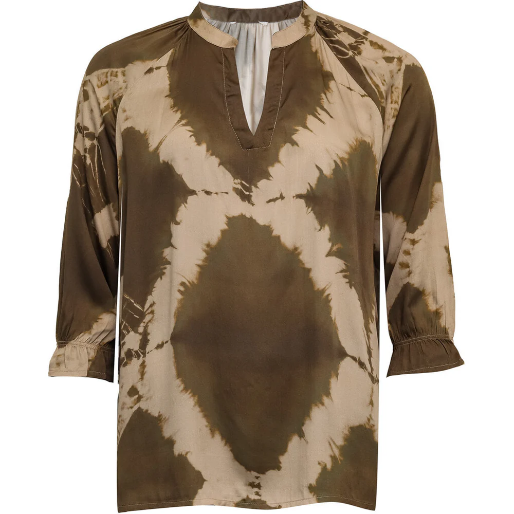 This blouse is super nice and a simple style from Costamani’s series “vacay”. The blouse has a small v-neck, three quarter sleeves and a loose fit. On the sleeves it has a small elastic.