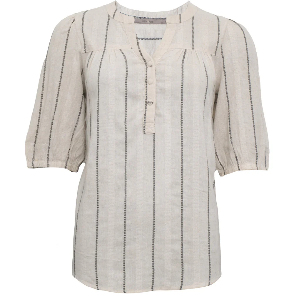 Airy and comfortable shirt-blouses that can be styled in many ways. The blouse has vertical stripes and a collar with v-neck and buttons.