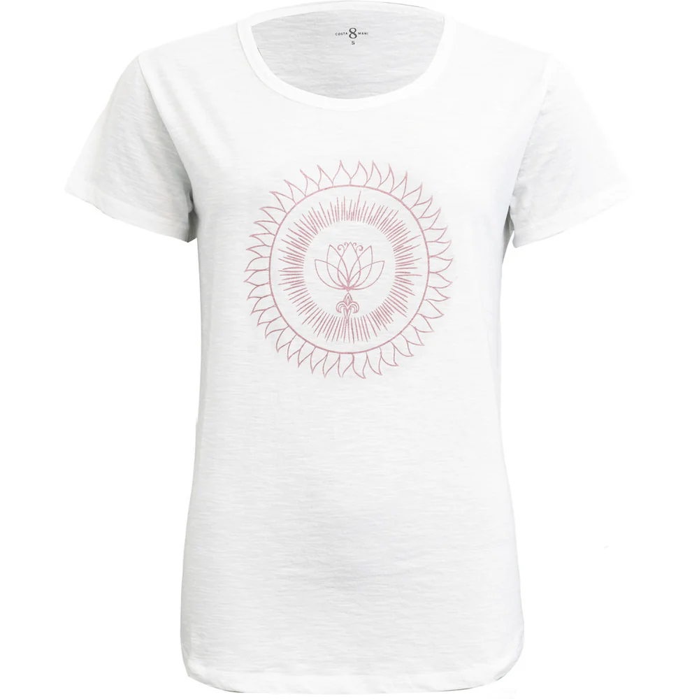 A nice and simple t-shirt that can be styled for most things or used alone. The t-shirt has a curved bottom and a small sleeve.