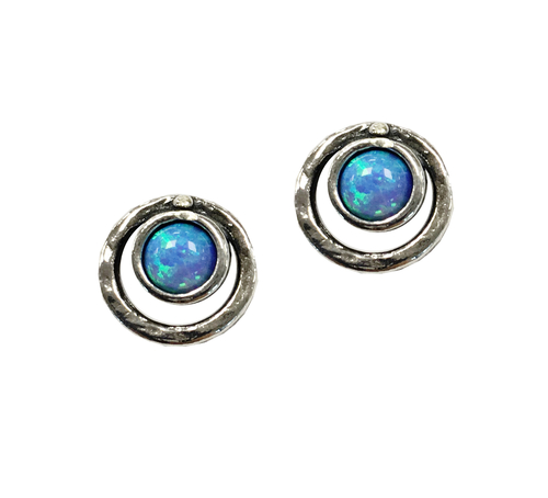 Beautifully handmade 925 sterling silver studs set with a semi-precious round blue opal stone.