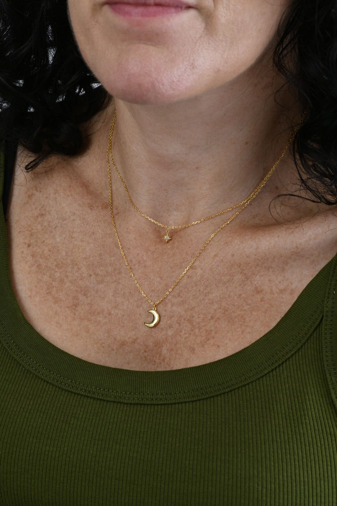 Dimensions: crescent moon 9.5mmx9.5mm, star 5.2mmx5.2mm , necklace 16″ – 18″ (adjustable)