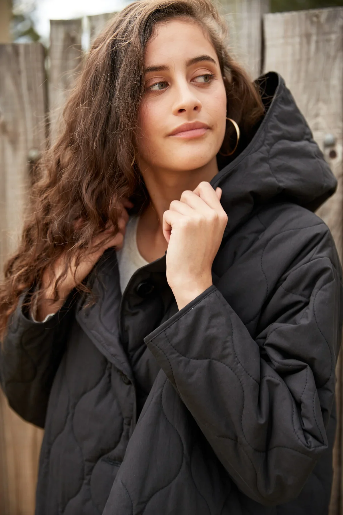 The Ribe Hood Jacket is a timeless cold-weather classic that promises enduring style through countless winters. With its comfortable, oversized fit and cosy quilted design, it sits effortlessly at the waist. The hood and button-down detailing provide the finishing touches, ensuring warmth stays securely locked in. Travelling this winter? This jacket effortlessly layers over your rugged-up look, making it your go-to winter companion.