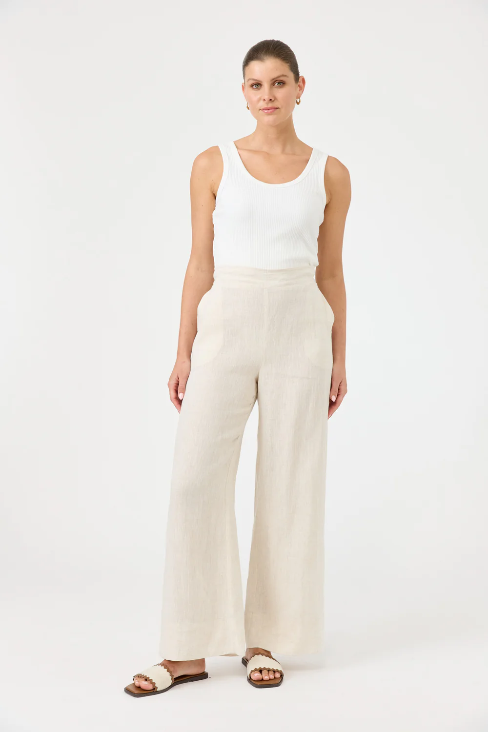 With a sleek, straight-leg design and a half-elastic waist, wearing the Studio Pant feels like a dream. These pants, made with a lightweight 100% linen composition, offer a timeless silhouette that will transcend seasons. Whether paired with a simple tank or t-shirt, these linen pants complement your favourite sandals or sneakers, creating a laid-back, off-duty look.